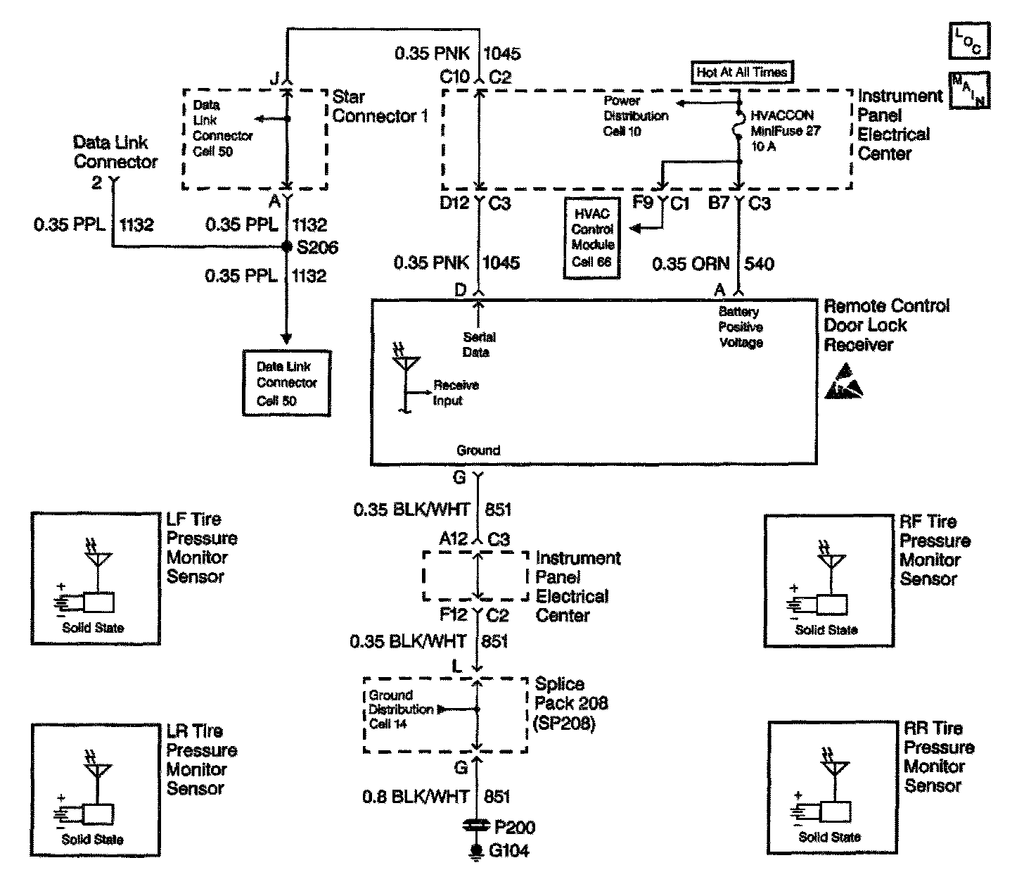 - If there is an open in the serial data line to the receiver, the IPC will display XXX kPa (XX psi) for all tire pressure values and the SERVICE TIRE WARN SYS message.
