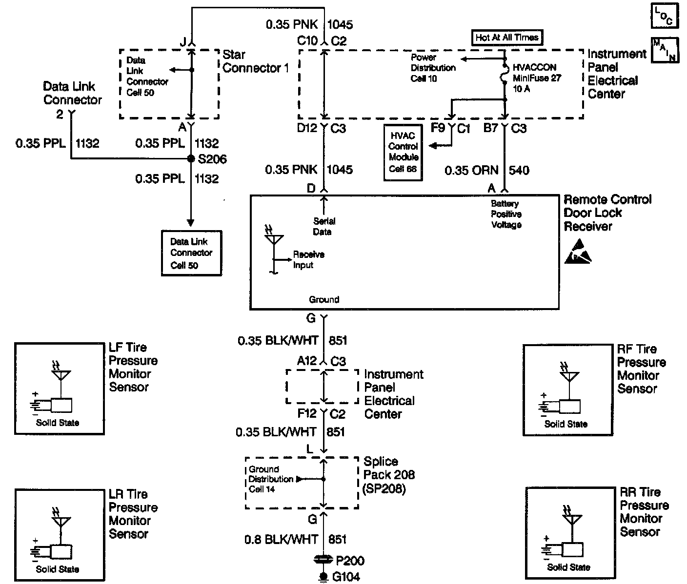 - If there is an open in the serial data line to the receiver, the IPC will display XXX kPa (XX psi) for all tire pressure values and the SERVICE TIRE WARN SYS message.