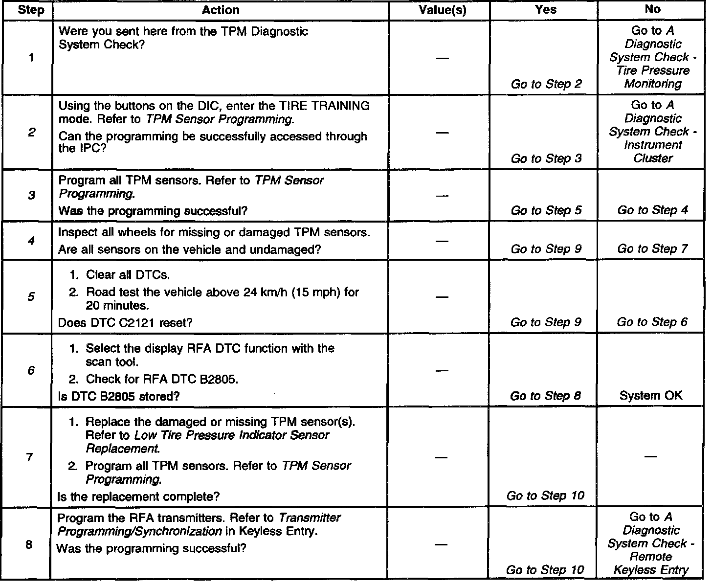 2. This test checks if the IPC can enter the TIRE TRAINING mode. If the display is blank, or if the DIC buttons do not respond when pressed, refer to IPC Diagnostic System Check.