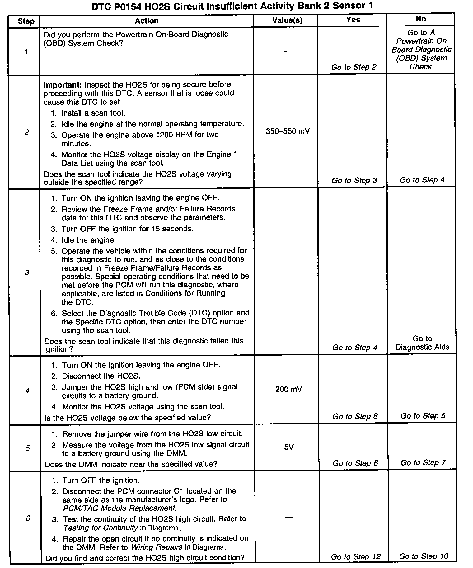 4. If the scan tool indicates the HO2S voltage goes below 200 mV, this indicates the HO2S circuits and PCM are OK.