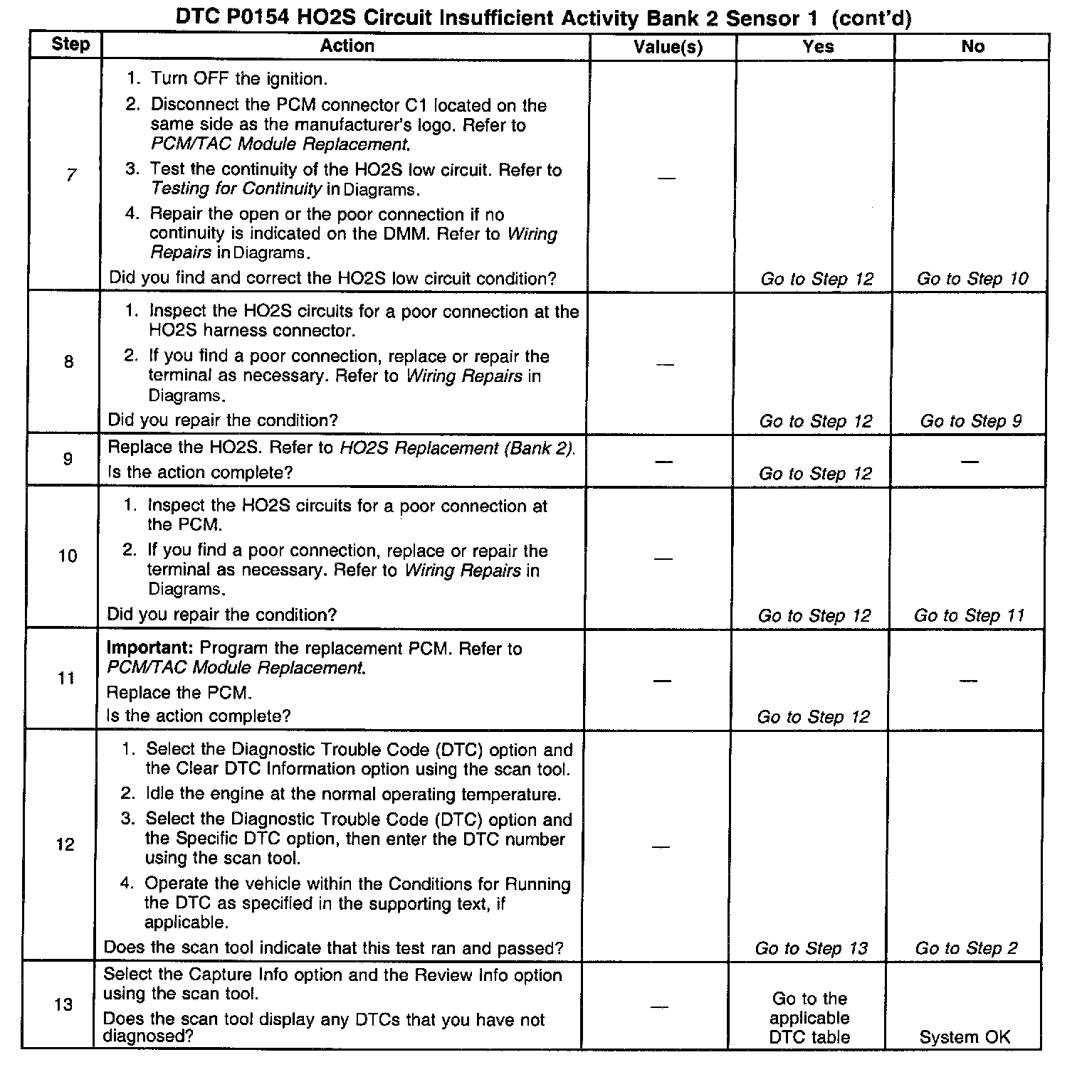 6. This step verifies whether the low signal circuit from the PCM is OK. A voltage indicates the PCM and wiring are OK.