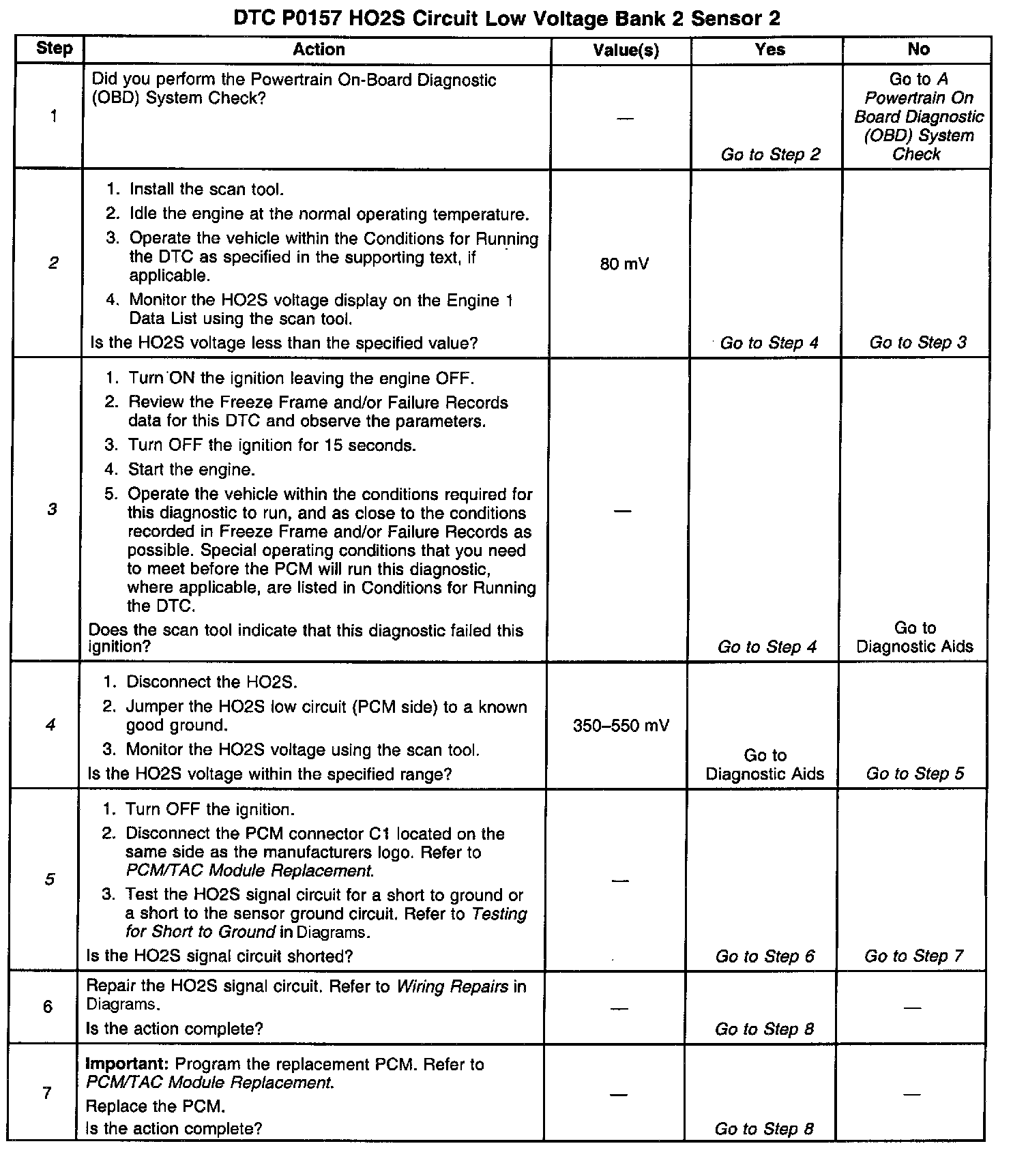 2. If the HO2S voltage is fixed well below 200 mV, this indicates a short to battery ground or chassis ground. If the voltage is fixed near or above 200 mV, this indicates a short to a PCM ground. When the HO2S voltage is fixed near 200 mV, indicates the DTC set when the fuel system was in a Power Enrichment mode of operation. Idle the engine at the normal operating temperature before performing this test.