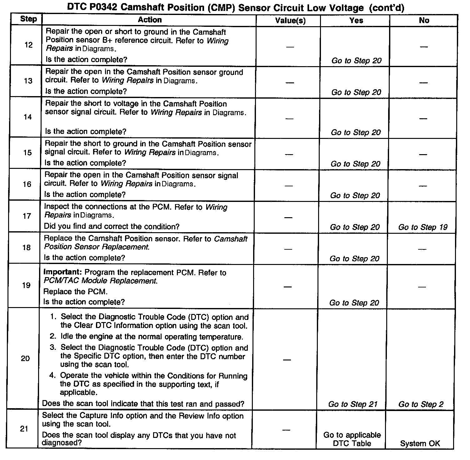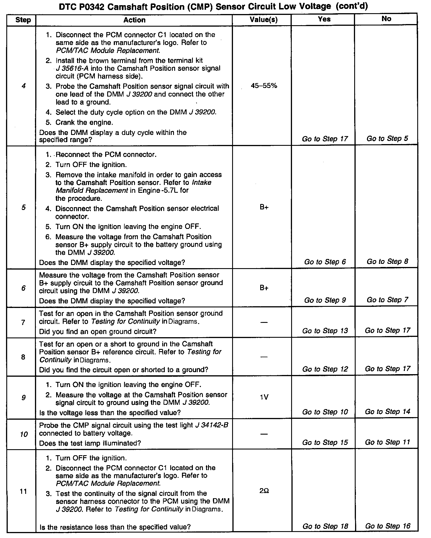 10. This step tests for a short to ground on the Camshaft Position sensor signal circuit.