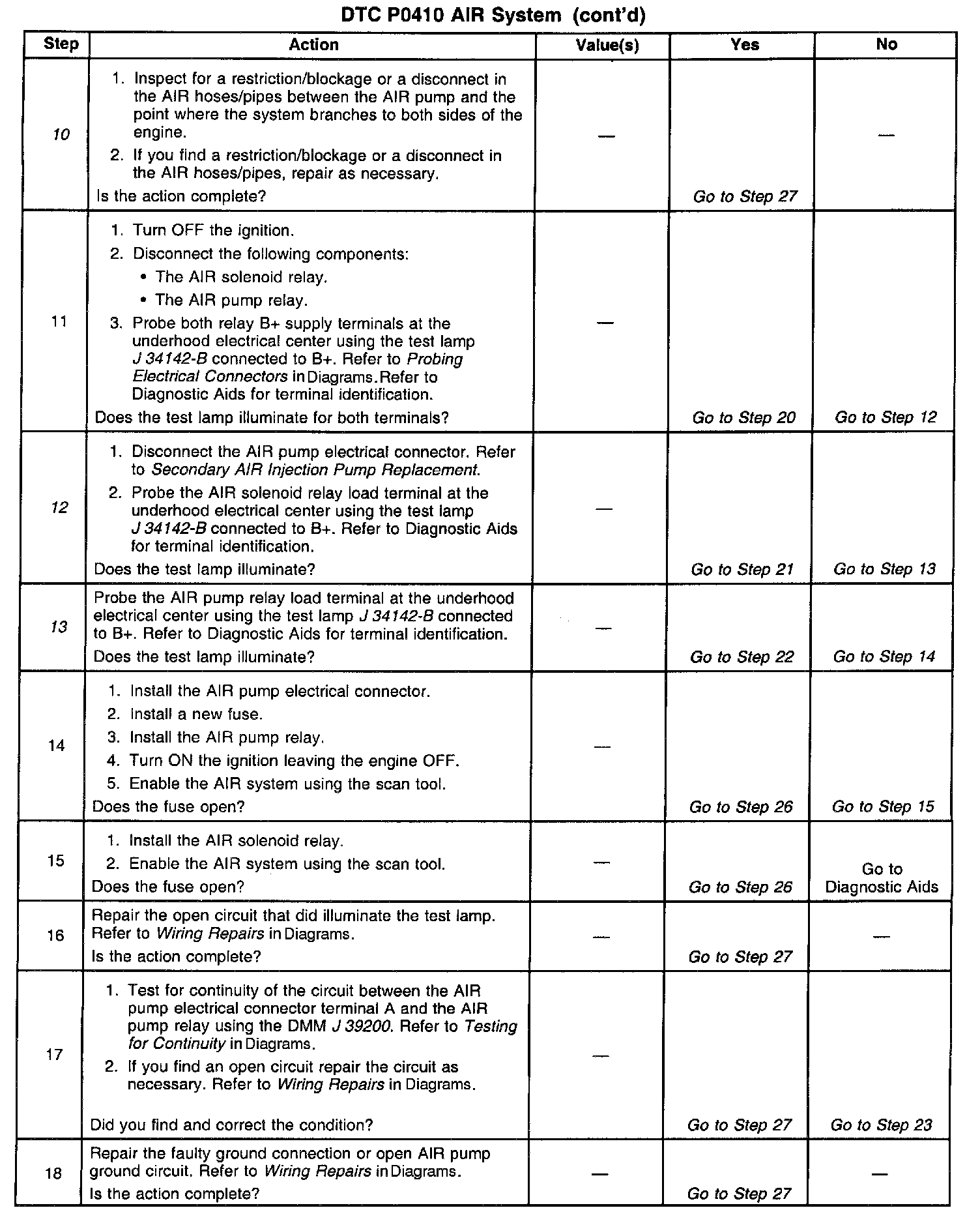 13. This step is testing for a grounded circuit between the AIR pump and the AIR solenoid relay.