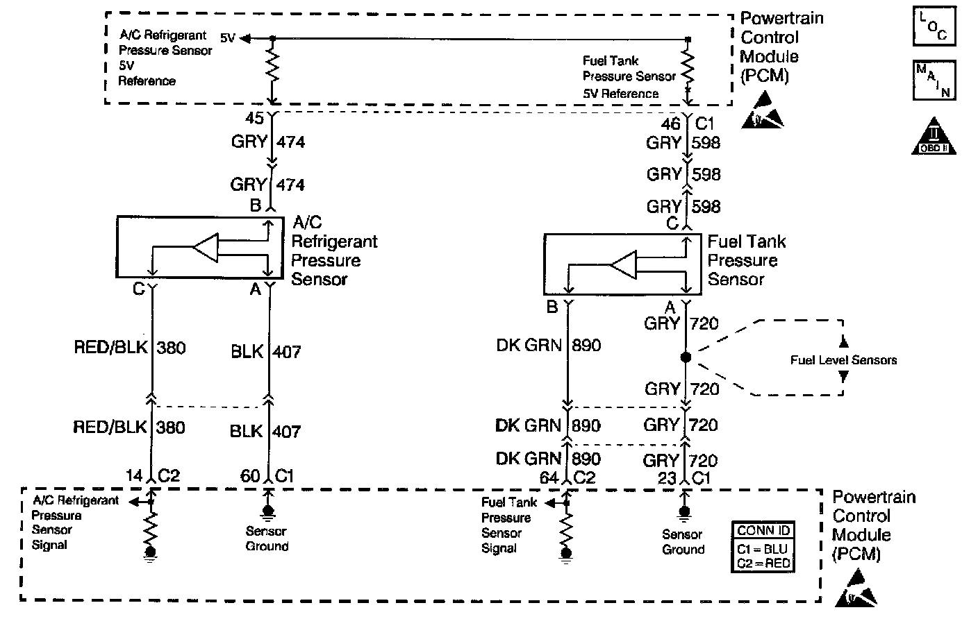 3. If DTC P1639 sets at the same time, this indicates that the 5 volt reference circuit is shorted to a ground. The 5 volt reference circuit is internally connected within the PCM. The A/C Refrigerant Pressure Sensor may be causing this DTC to set. Refer to DTC P1639 for further diagnosis.