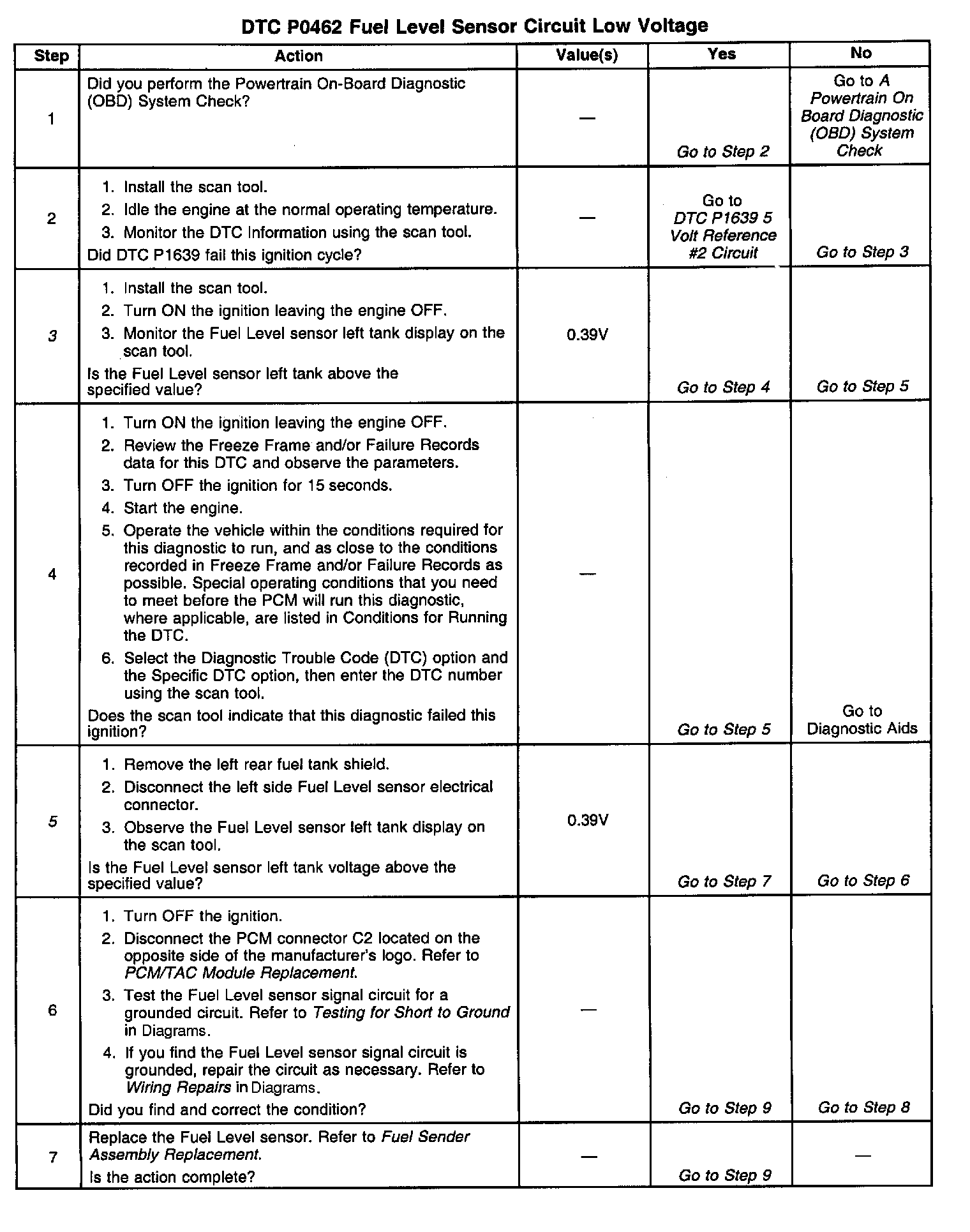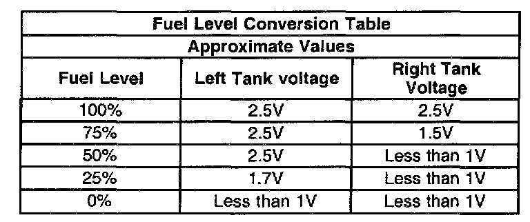 ^ The voltages in the Fuel Level Conversion Table are approximate values. Use the table to aid in diagnosis.