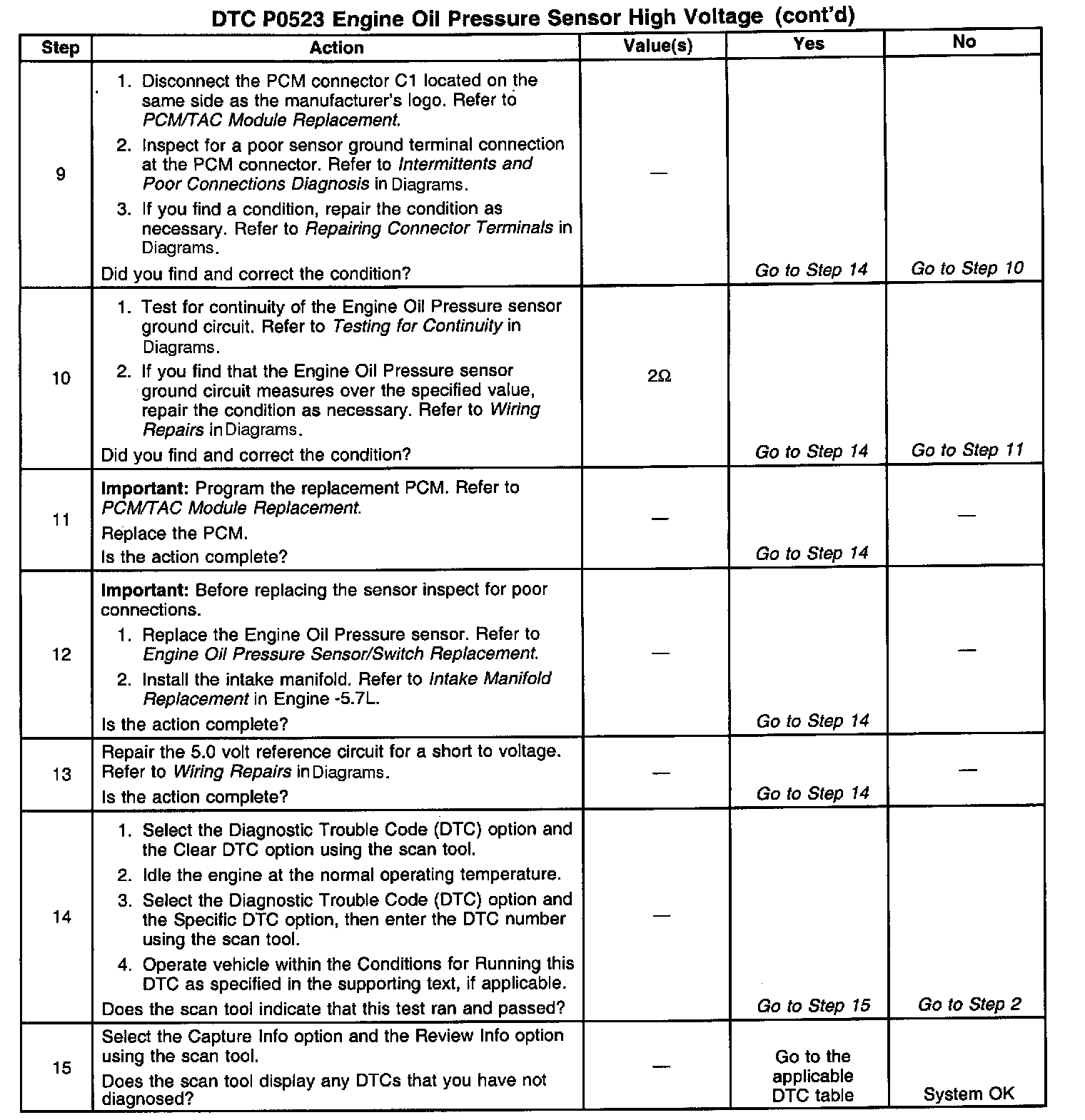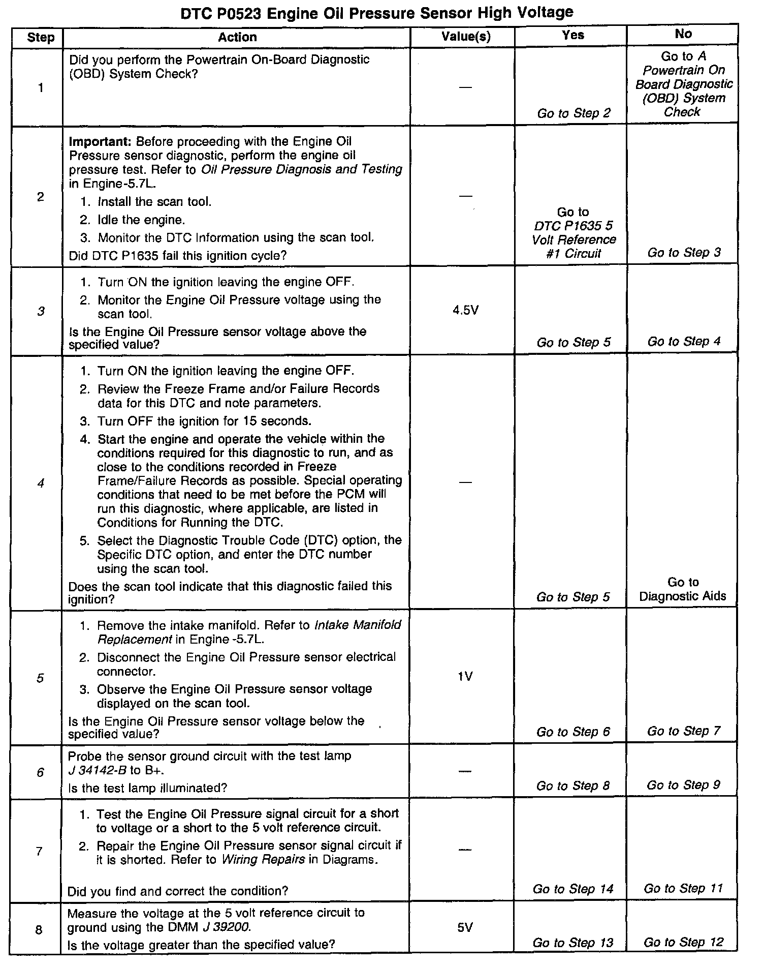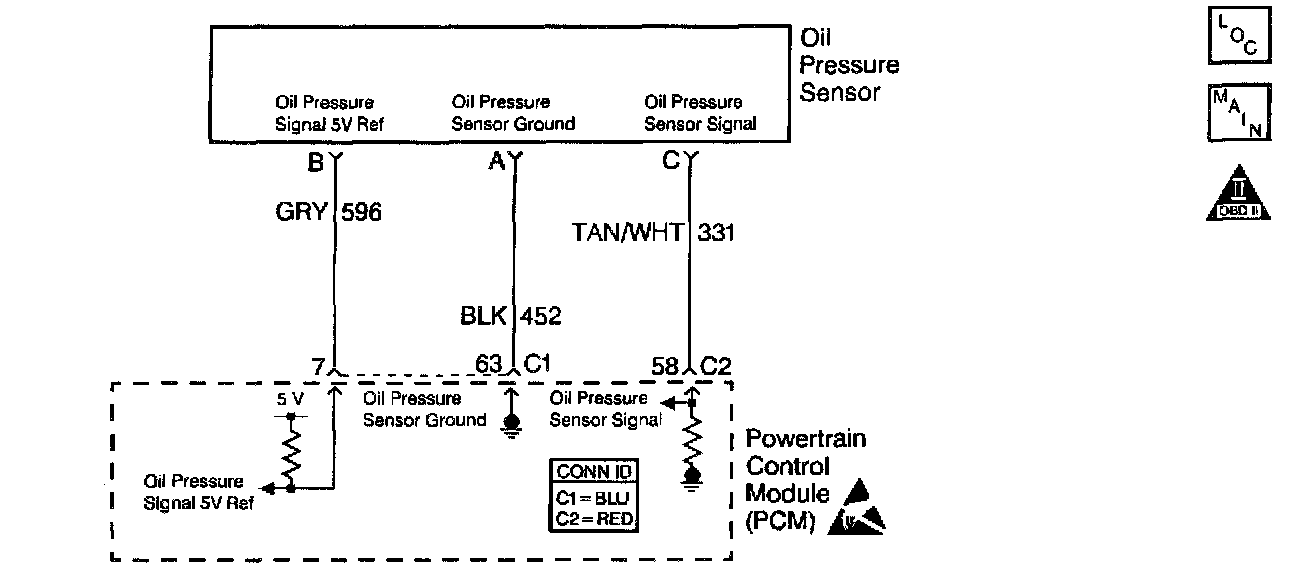 ^ The PCM 5.0 volt reference circuits are internally connected within the PCM. If all the Engine Oil Pressure sensor circuits are OK, inspect related 5.0 volt reference circuits. Refer to DTC P1635 5 Volt Reference #1 Circuit.