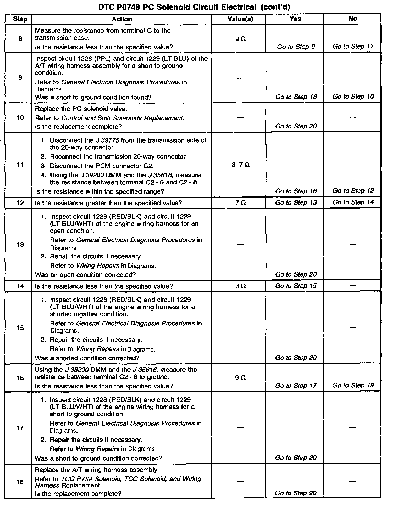 When the PCM detects a continuous open or short to ground in the PC solenoid valve circuit or the PC solenoid valve, then DTC P0748 sets. DTC P0748 is a type D DTC.