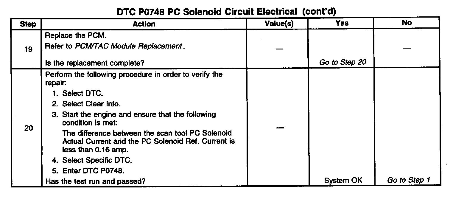 2. This step tests the ability of the PCM to command the PC solenoid valve.