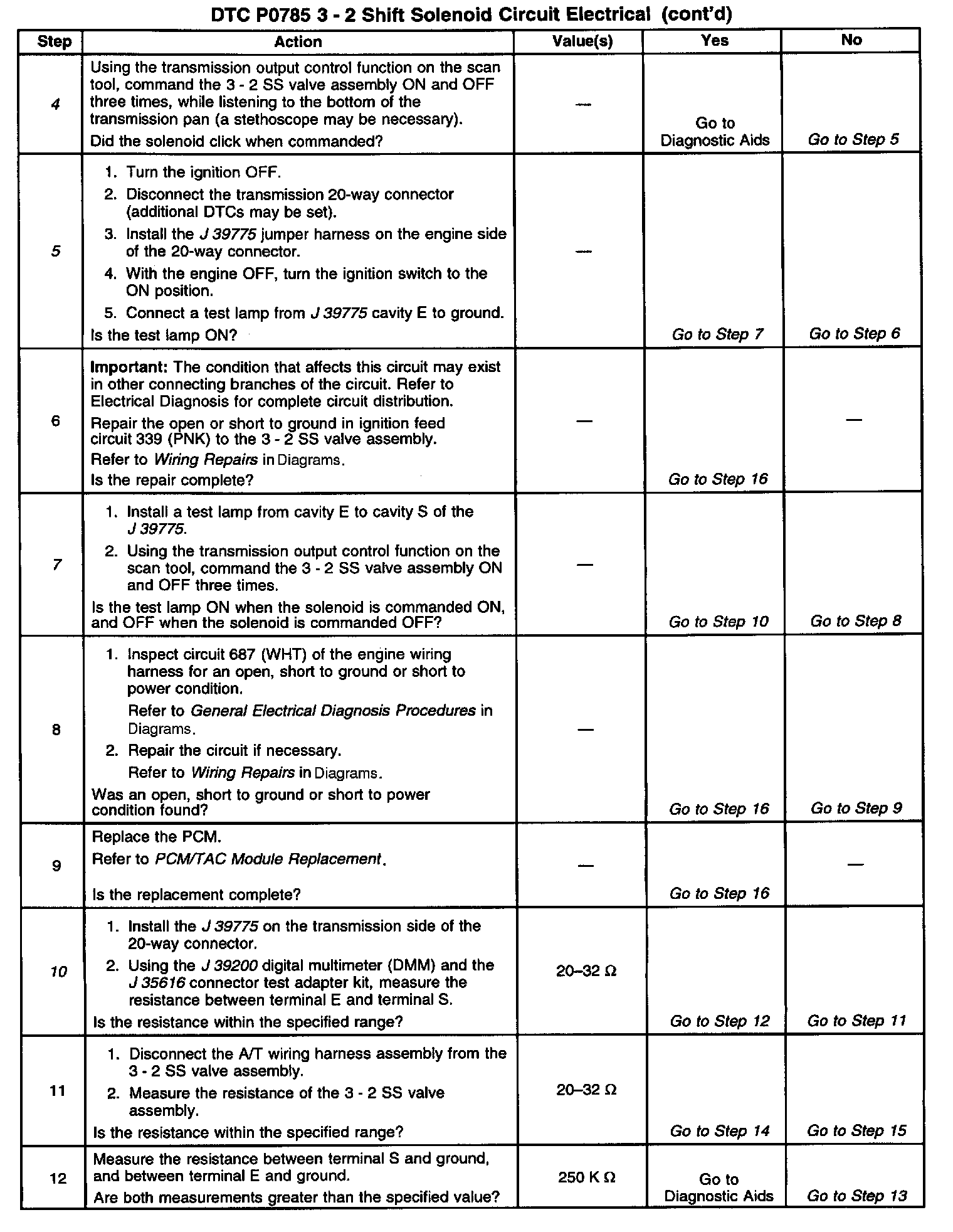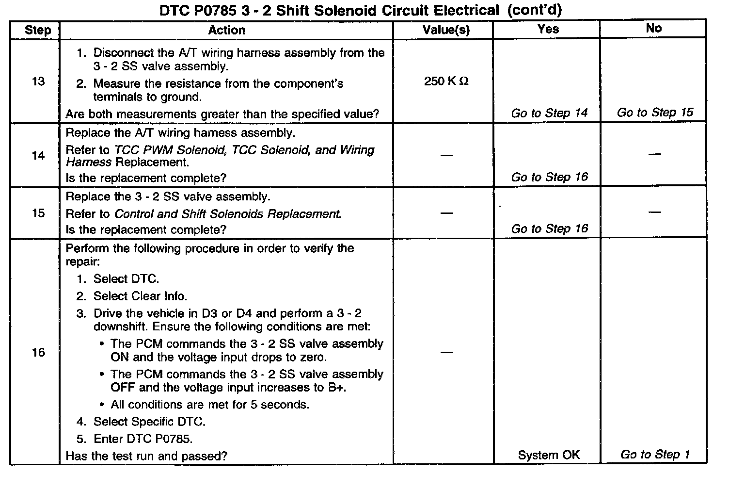 When the PCM detects a continuous open or short to ground in the 3 - 2 SS valve assembly circuit or the 3 - 2 SS valve assembly, then DTC P0785 sets. DTC P0785 is a type A DTC.