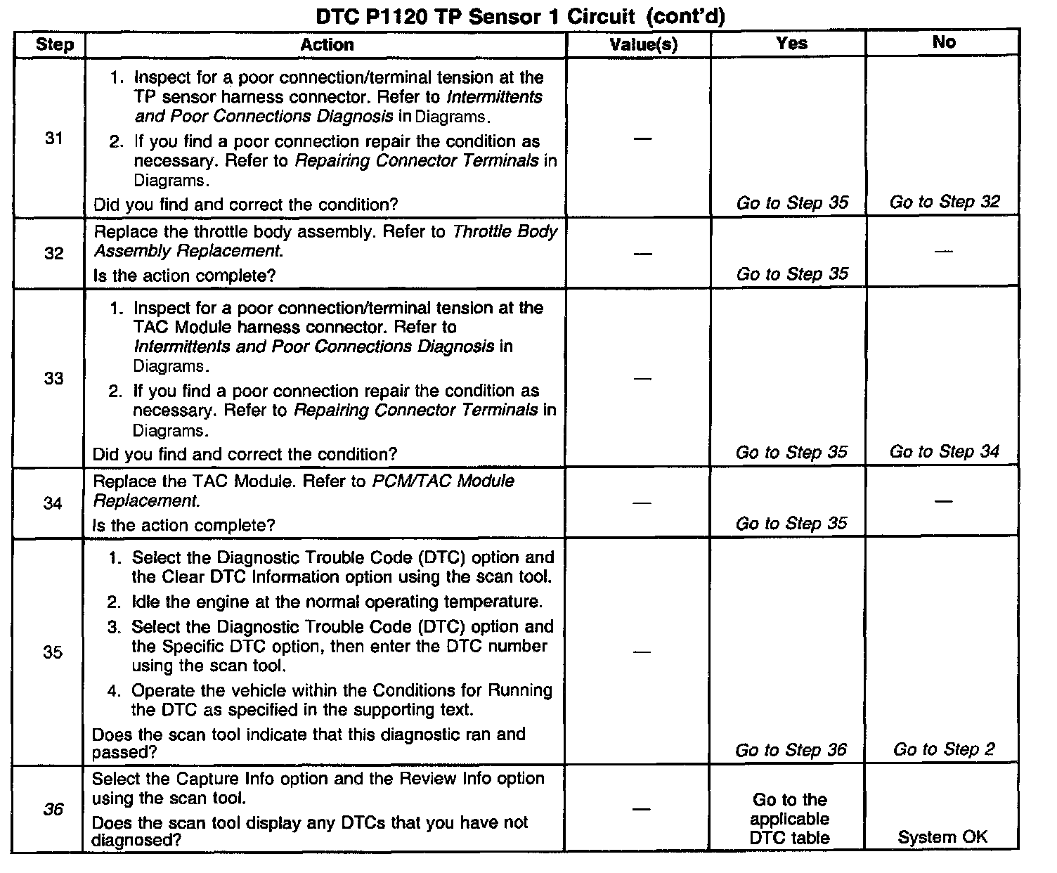 36. When the TAC module detects a problem within the TAC System, more than one TAC System related DTC may set. This is due to the many redundant tests run continuously on this system. Locating and repairing one individual problem may correct more than one DTC. Keep this in mind when reviewing the captured DTC information.