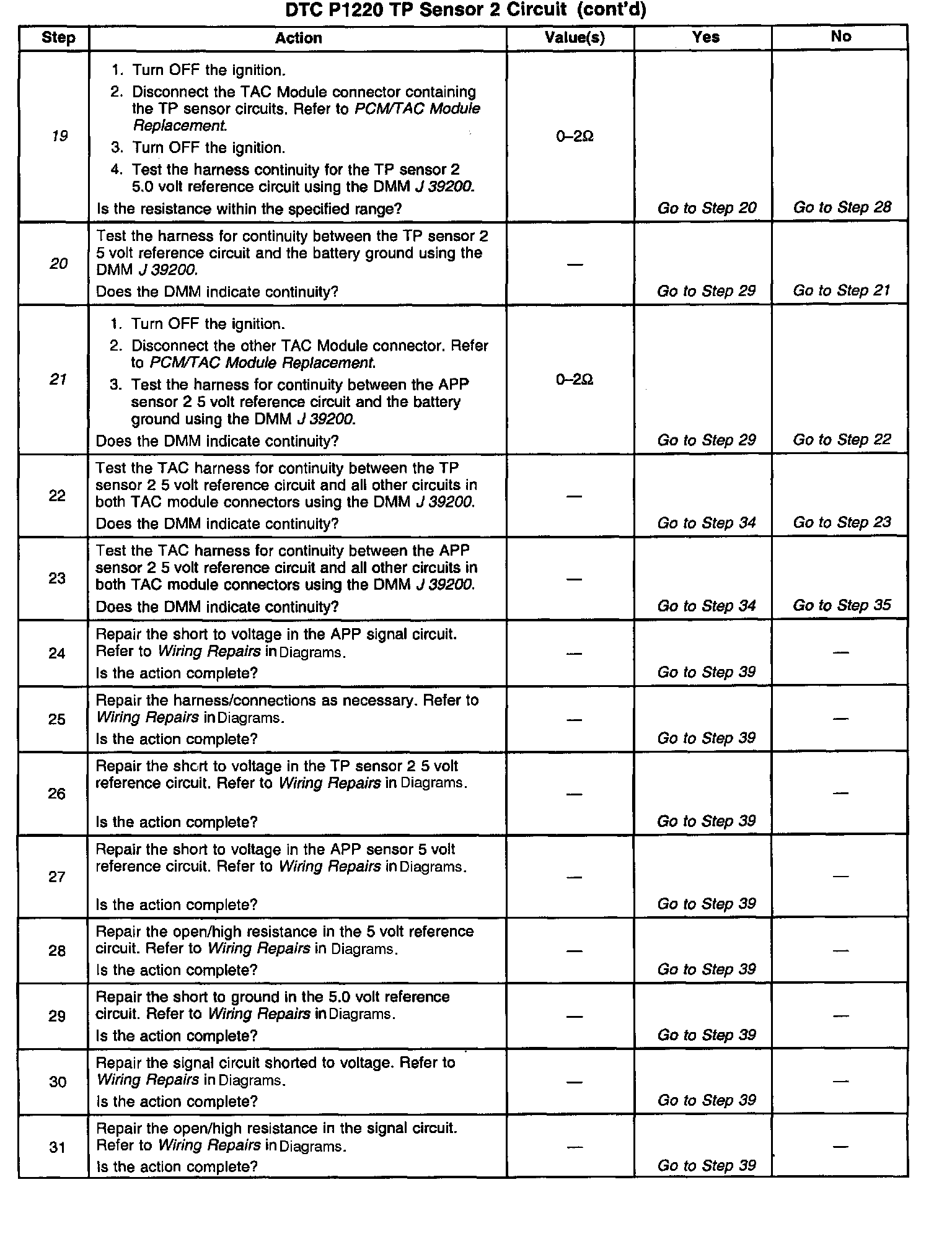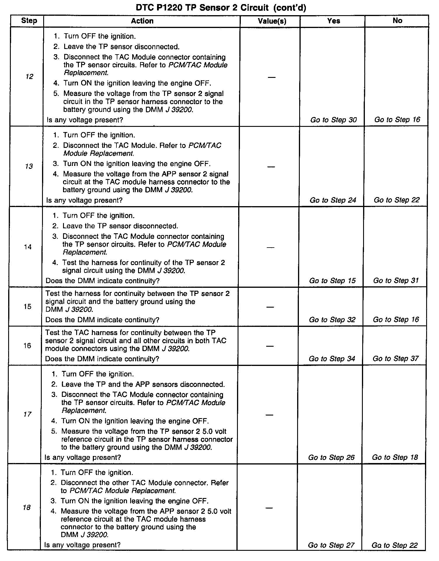 17. This step is testing for a short to voltage on the TP sensor 2 5.0 volt reference circuit. The TP 2 sensor and the APP 2 sensor share a common 5 volt reference. The 5 volt reference circuits are connected internally within the TAC module. Disconnecting the TAC module will isolate the 5 volt reference circuits.