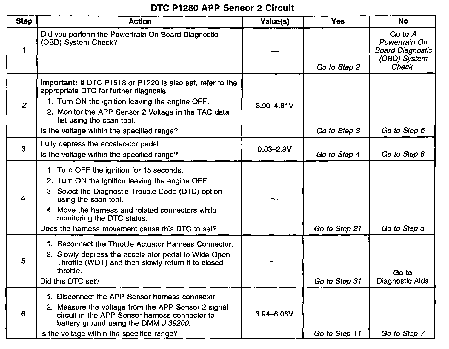 ^ When the TAC module detects throttle movement with a DTC P1280 set, a DTC P1281 also sets.