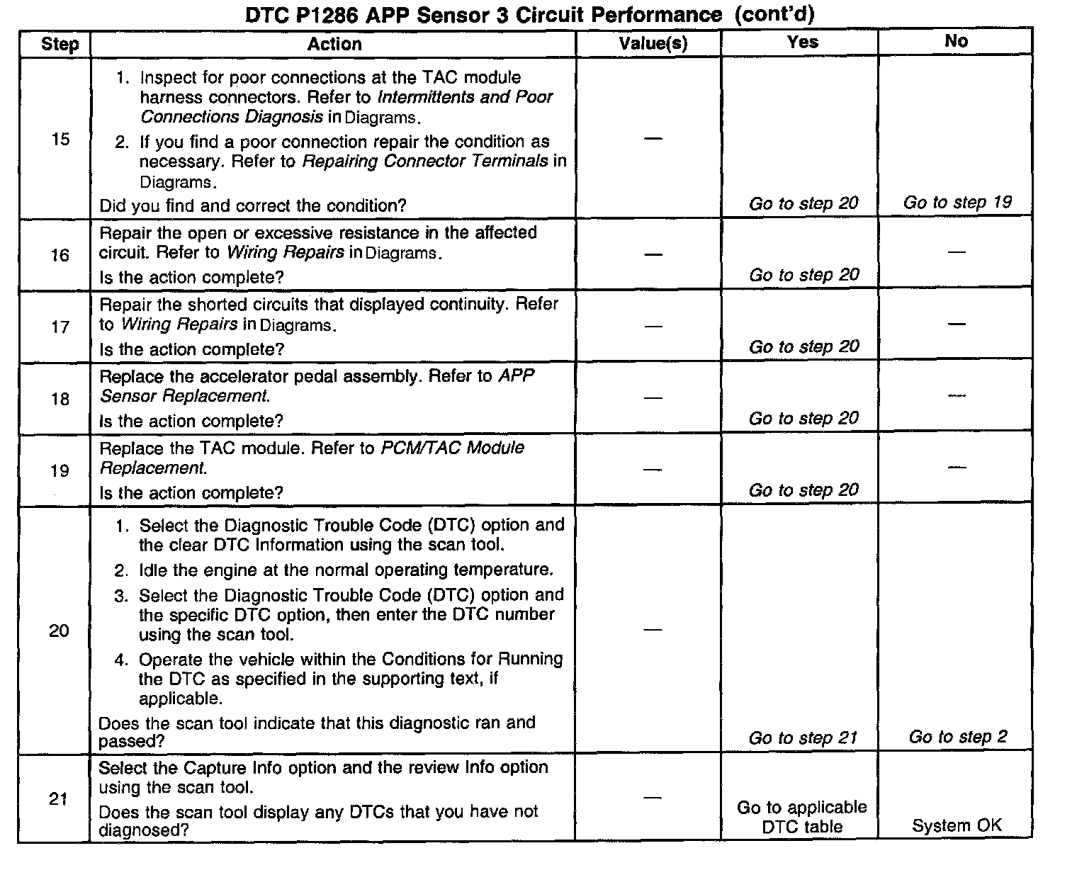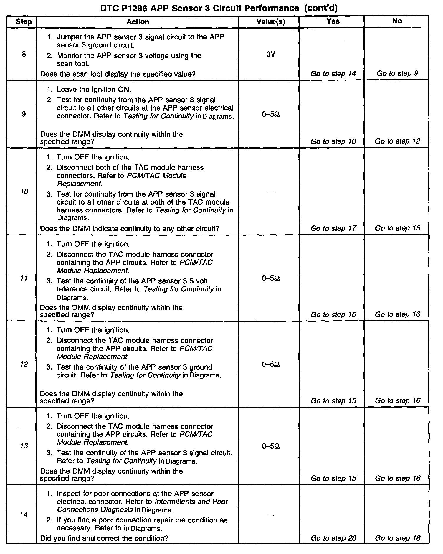 The numbers below refer to the steps numbers in the diagnostic table