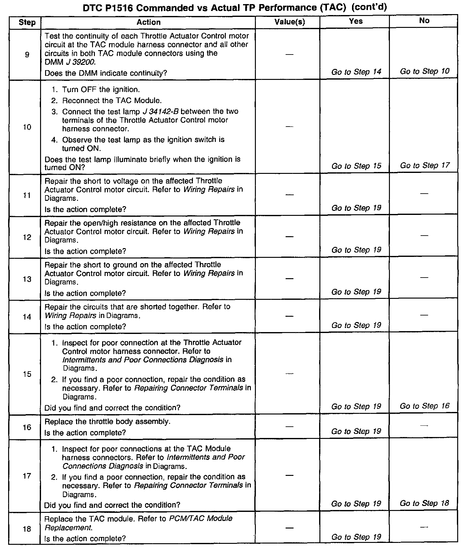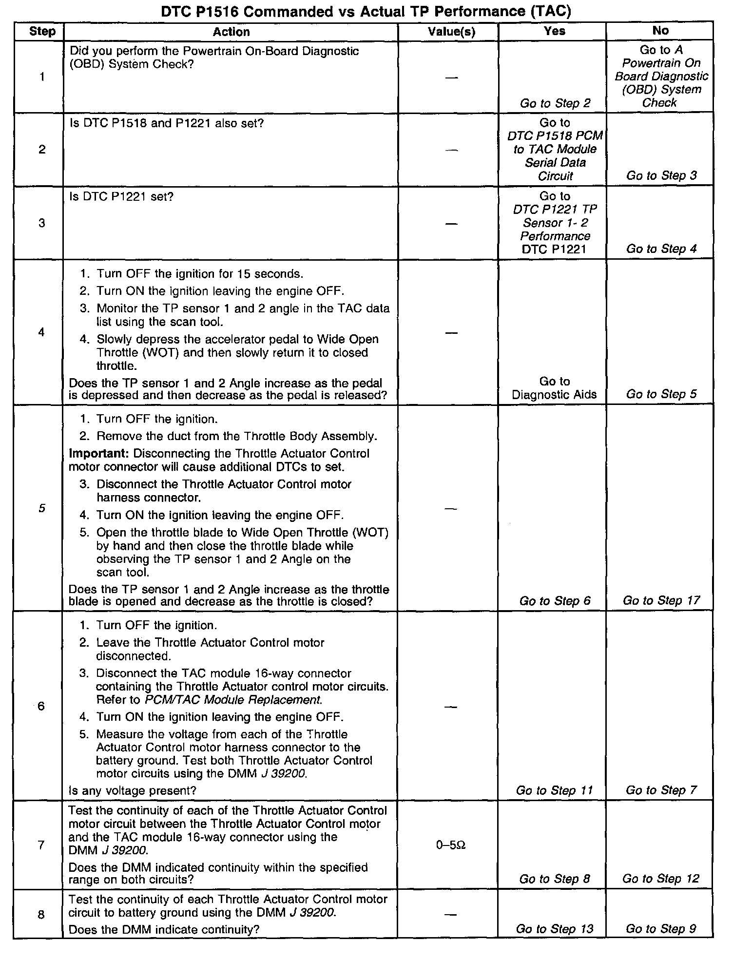^ The TAC module detects that the commanded and actual throttle positions are not within a calibrated range of each other or the PCM and the TAC cannot determine throttle position or both TP sensors are invalid.