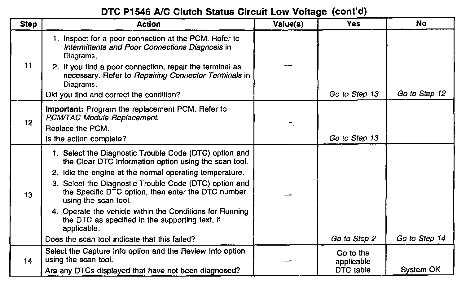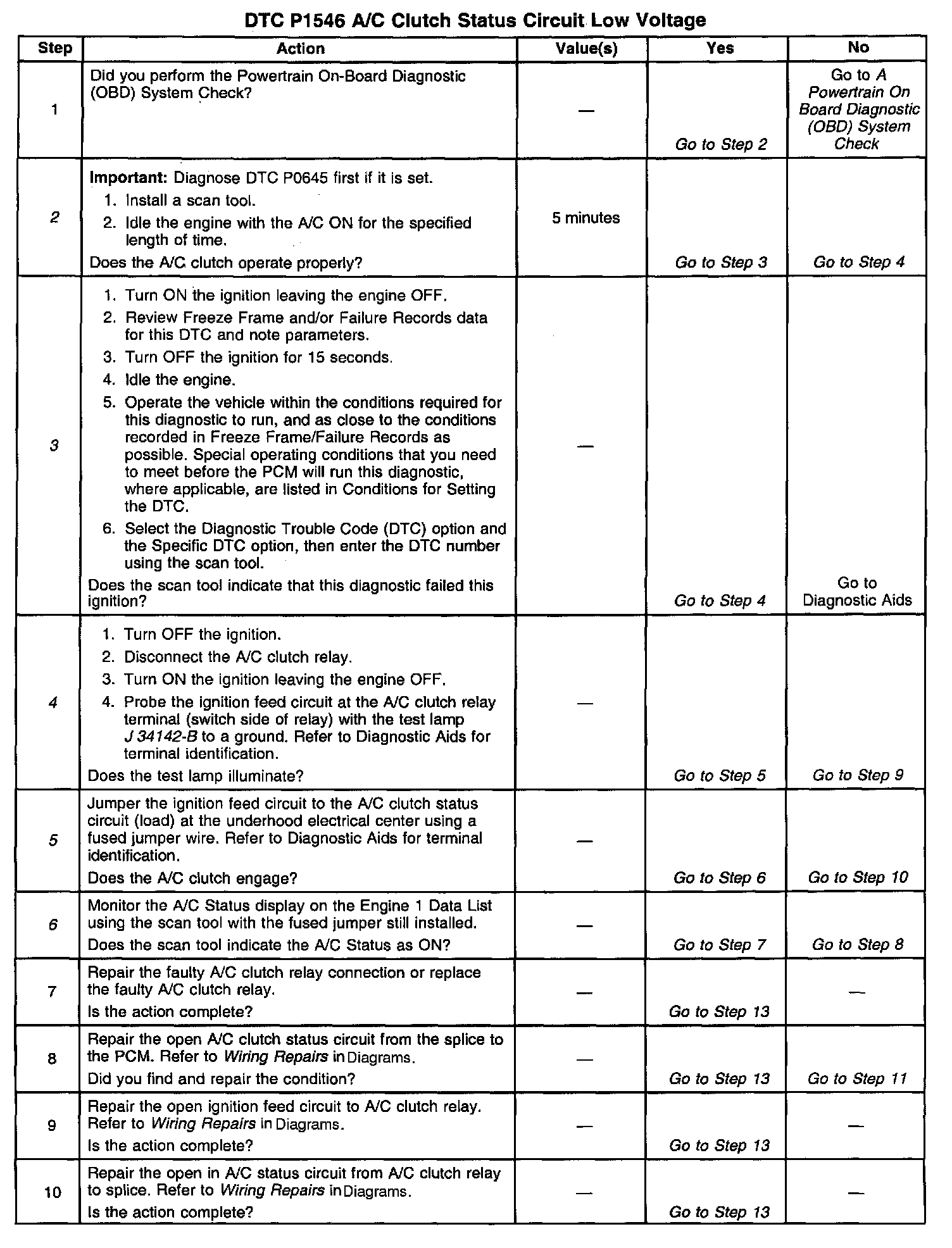 2. This step tests the operation of the A/C compressor clutch. The PCM disables the A/C compressor clutch when this DTC is set.
