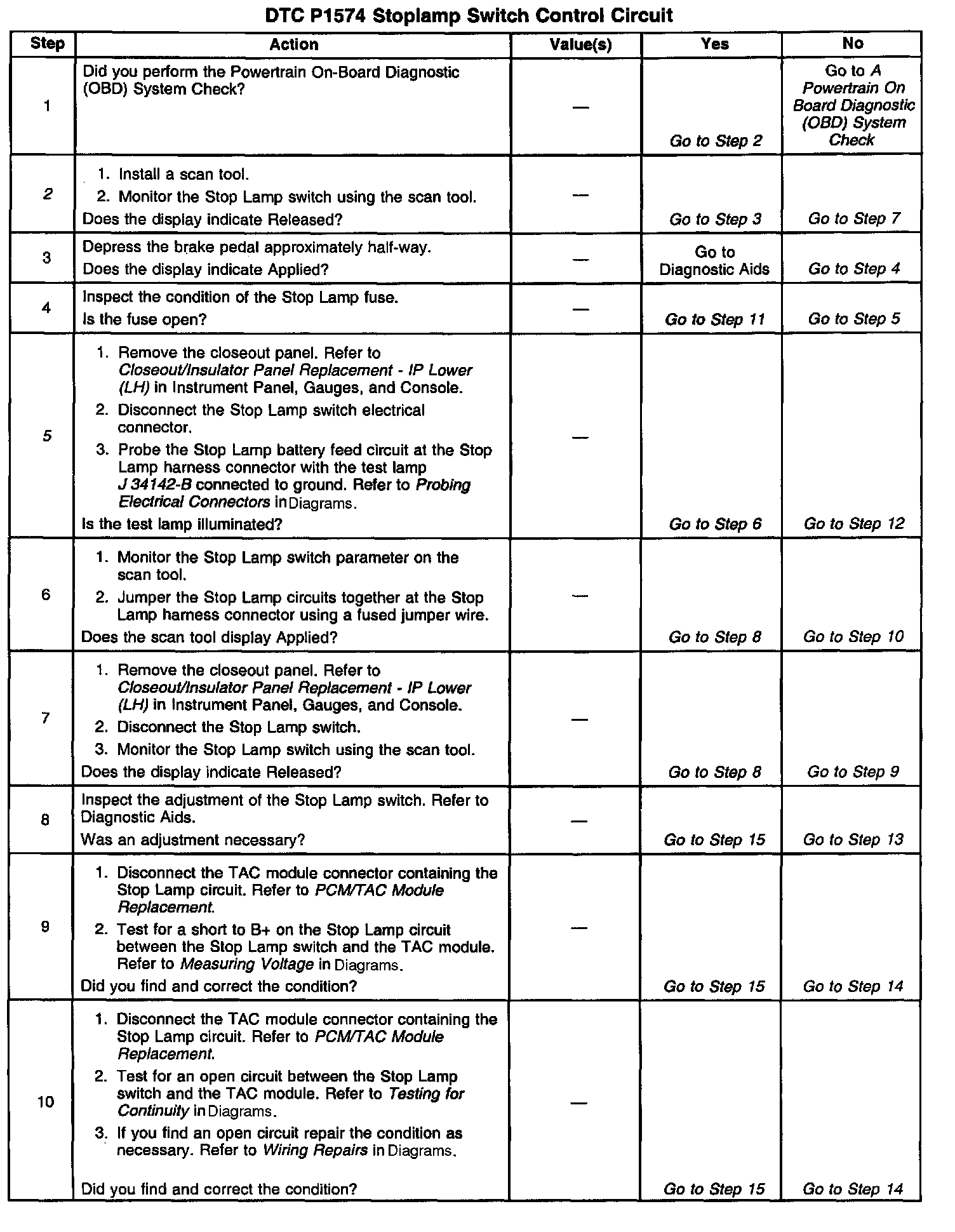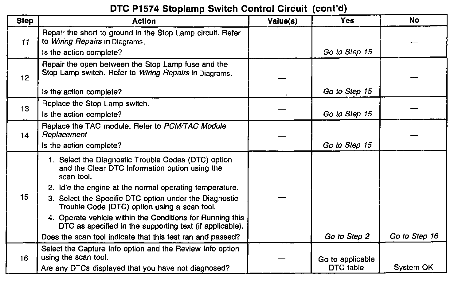 If the TAC module senses a voltage on the Brake Lamp Switch signal circuit when the Brake Lamp Switch should be open, this DTC sets.