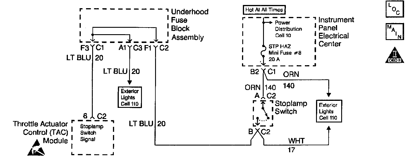 The Brake Lamp Switch is a normally open switch. When the Brake Lamp Switch is closed, the TAC module senses ignition voltage on the Brake Lamp Switch signal circuit.