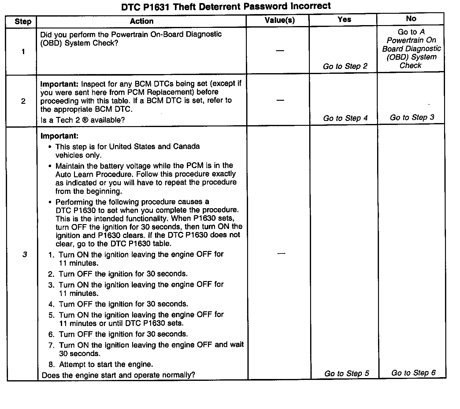 This diagnostic tests for mismatched passwords between the BCM and PCM. Whenever replacing the BCM or PCM, follow the theft learn procedure in order for the system to learn the new password.