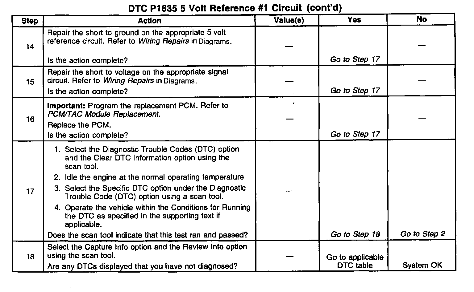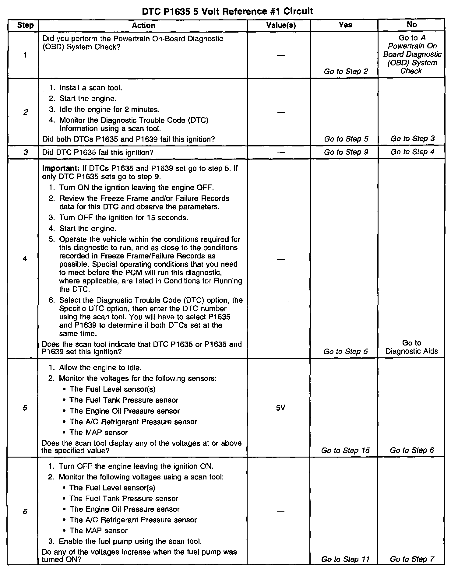 3. The 5 volt reference circuits for the sensors are connected together inside the PCM. When only P1635 is set, this indicates a short to ground on one of the 5 volt reference circuits.