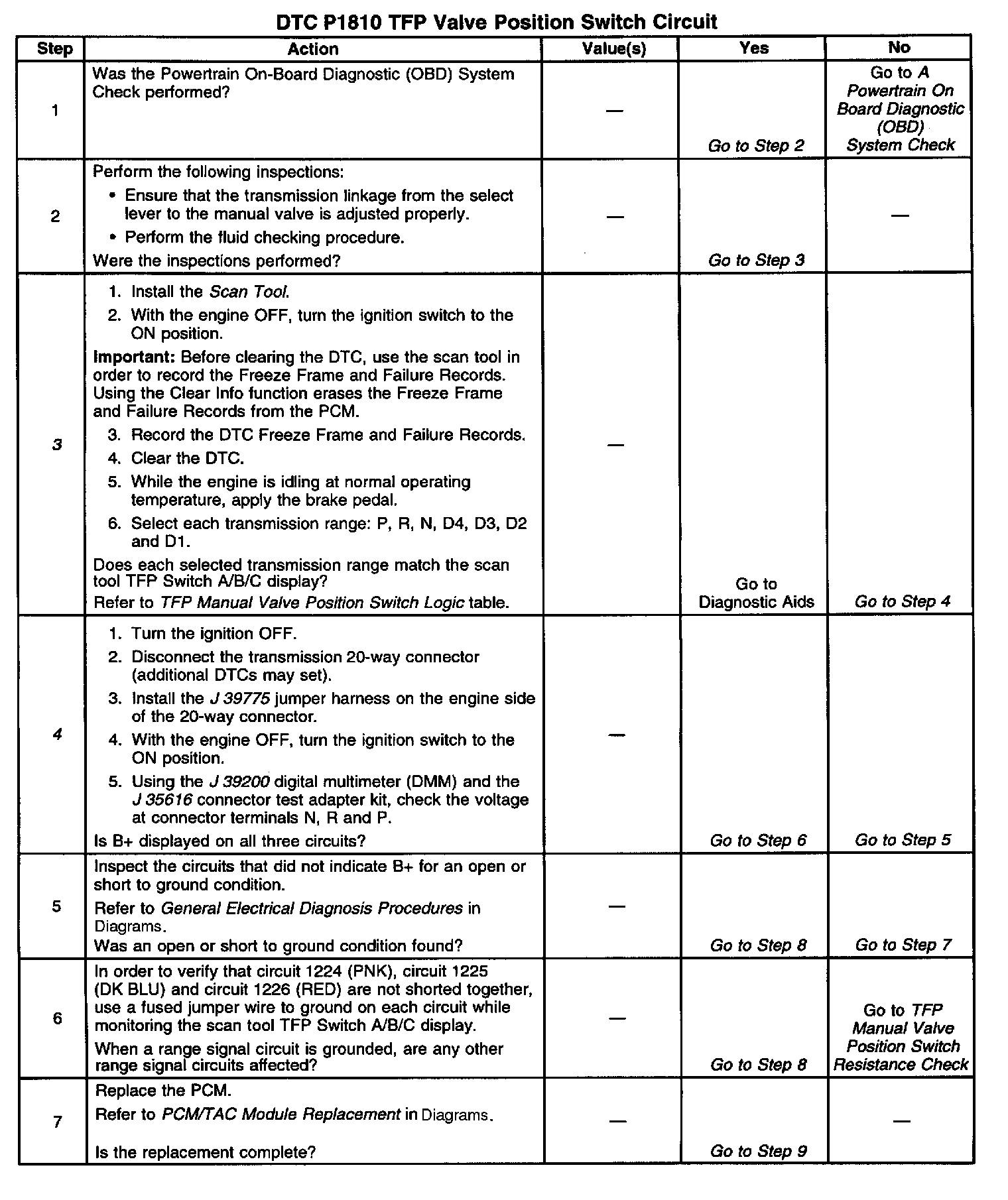 ^ Refer to TFP Manual Valve Position Switch Resistance Check, Functional Test Procedure and TFP Manual Valve Position Switch Logic for further information.