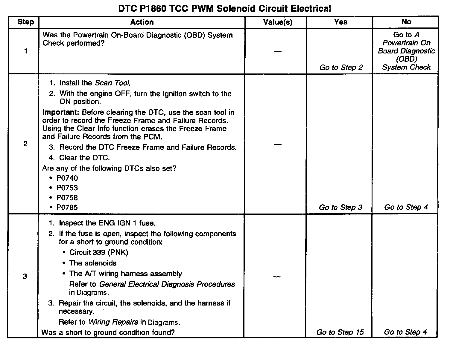When the PCM detects a continuous open or short to ground in the TCC PWM solenoid valve circuit or the TCC PWM solenoid valve, then DTC P1860 sets. DTC P1860 is a type B DTC.