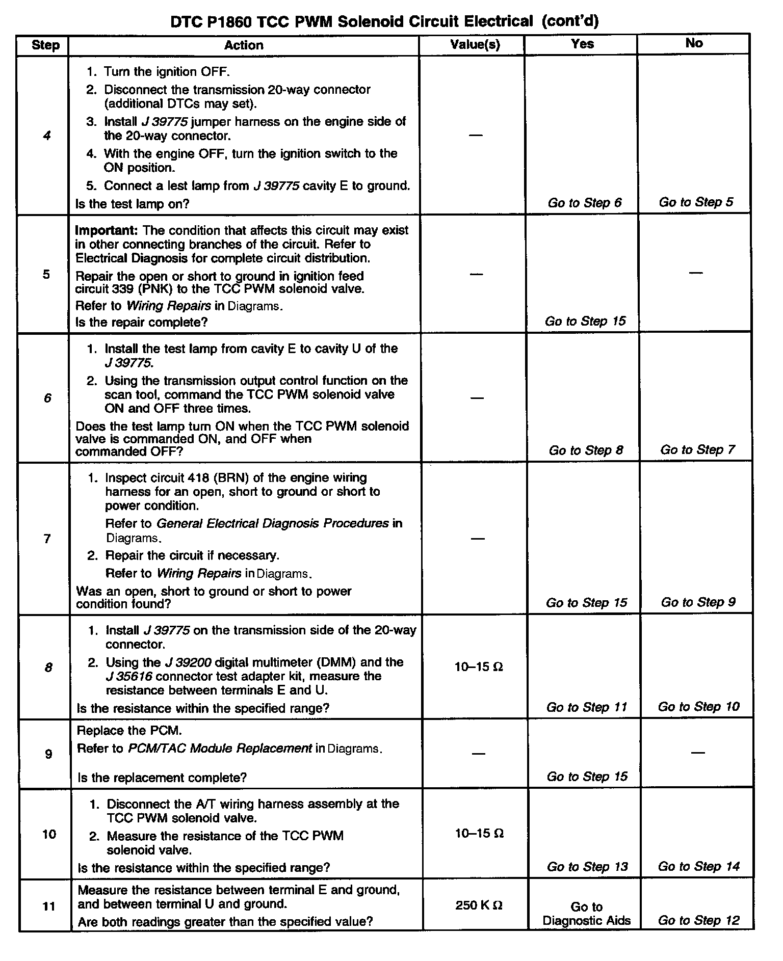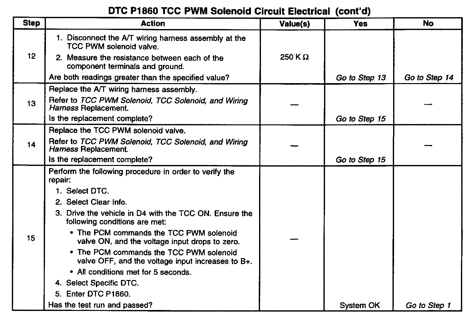 8. This step tests the resistance of the TCC PWM solenoid valve and the automatic transmission (A/T) wiring harness assembly.