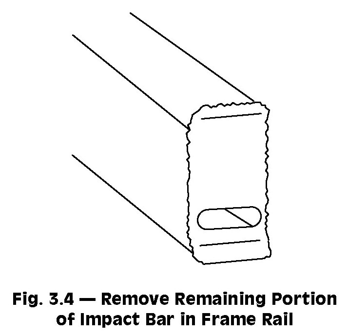 4. Cut the welds around the perimeter of the frame rail (fishmouth) ends (Fig.3.3). Cut welds favoring the impact bar side of the joint. DO NOT cut into the frame rails.
