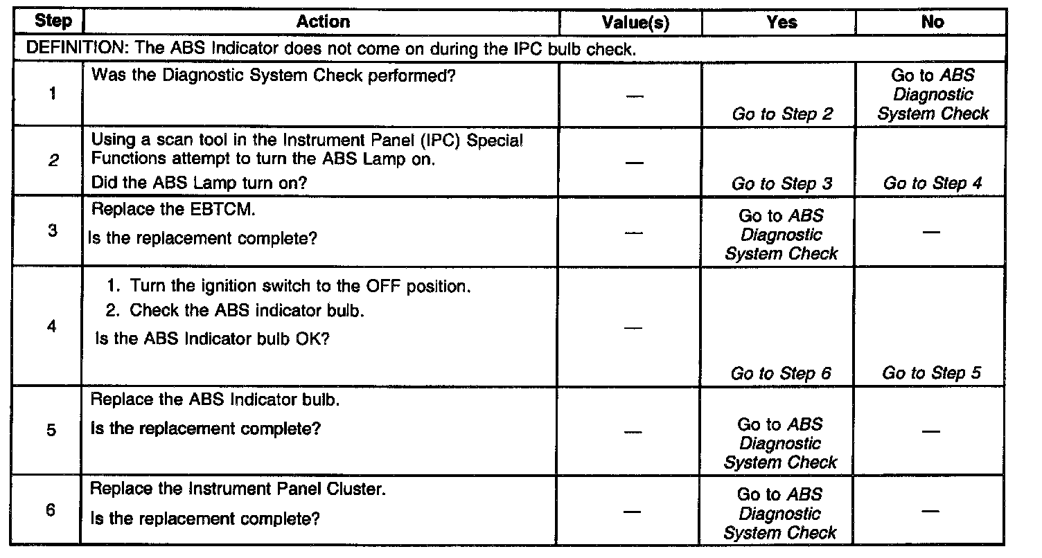 ABS Indicator Inoperative W/No DTC Set