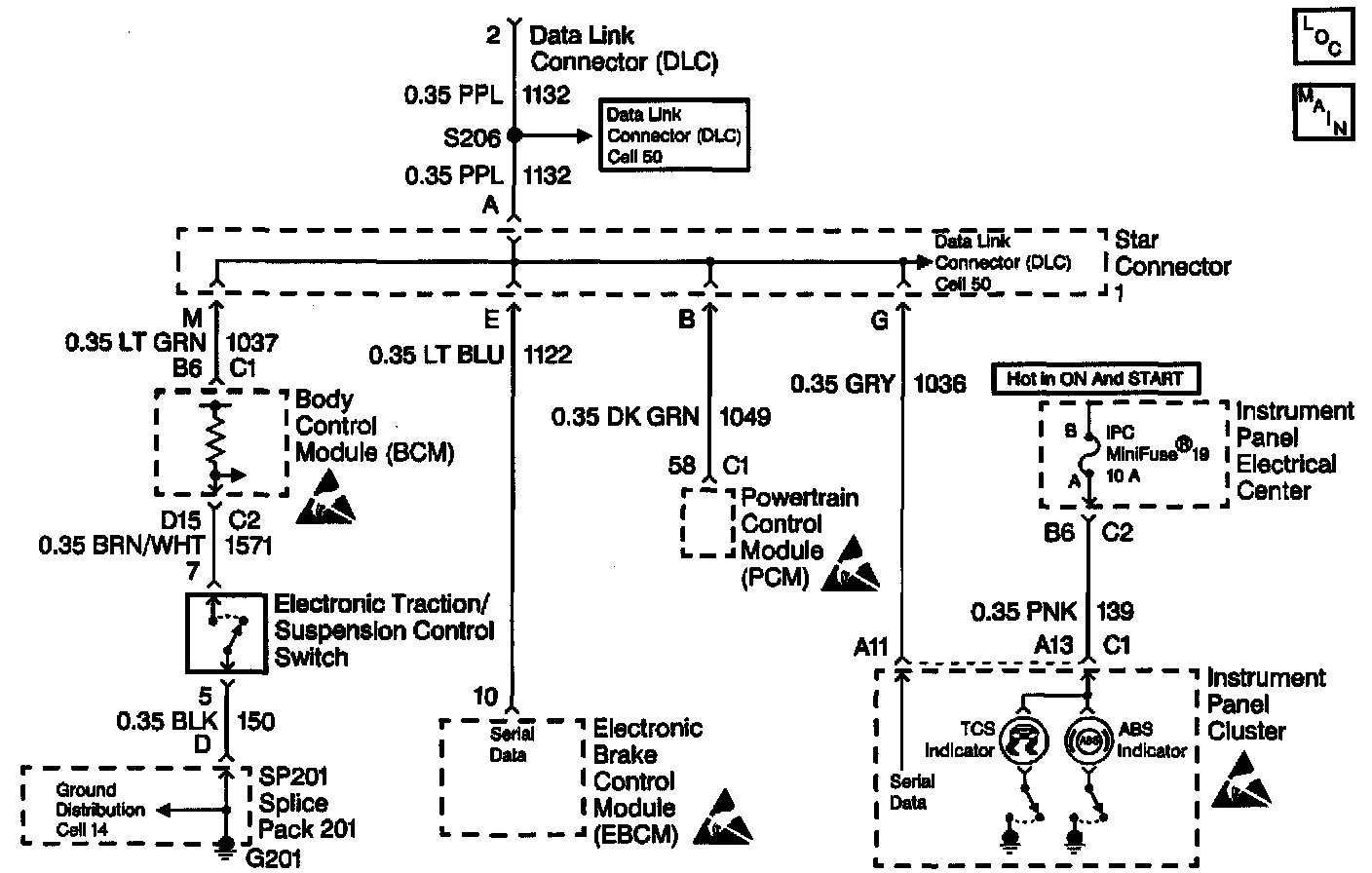 The Instrument Panel Cluster (IPC) turn the Antilock Brake System (ABS) Indicator on during the IPC bulb check for approximately 3 seconds when the ignition switch is turned to the ON position. If the Electronic Brake and Traction Control Module (EBTCM) sets a Diagnostic Trouble Code (DTC) the EBTCM sends the IPC the command to turn the ABS Indicator on.