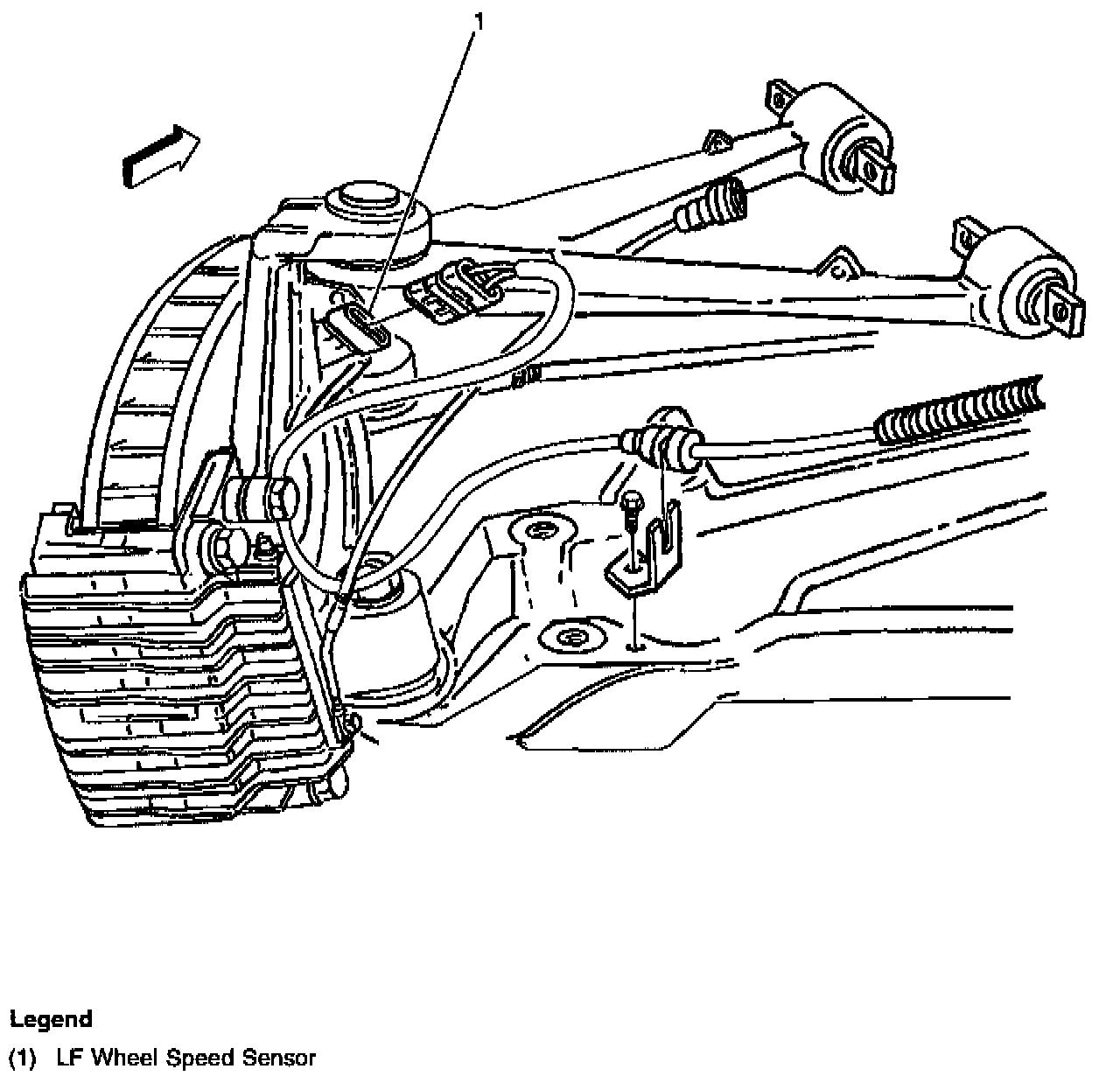 LF Wheel Speed Sensor: LF wheel between steering knuckle and brake rotor