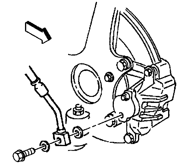 1. Install the brake caliper inlet fitting bolt, brake hose and two NEW copper gaskets to the brake caliper.