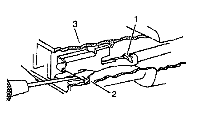 4. Grasp the wire at the back of the connector body and gently pull the terminal (1) from the connector body (3).