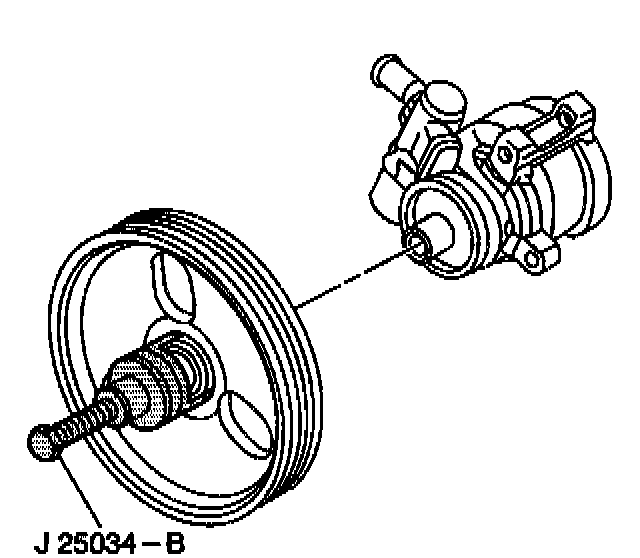 6. Remove the power steering pump pulley using J25034-B Pump Pulley Remover.