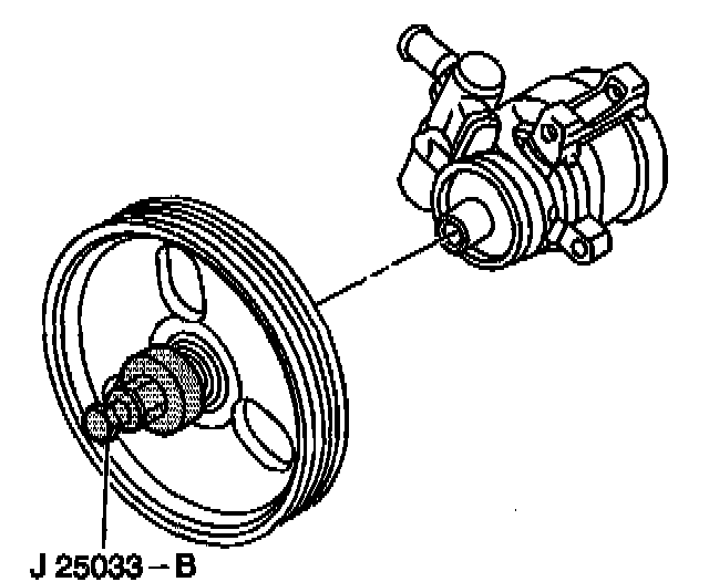 8. Install the power steering pump pulley to the pump using J25033-B Pump Pulley Installer.