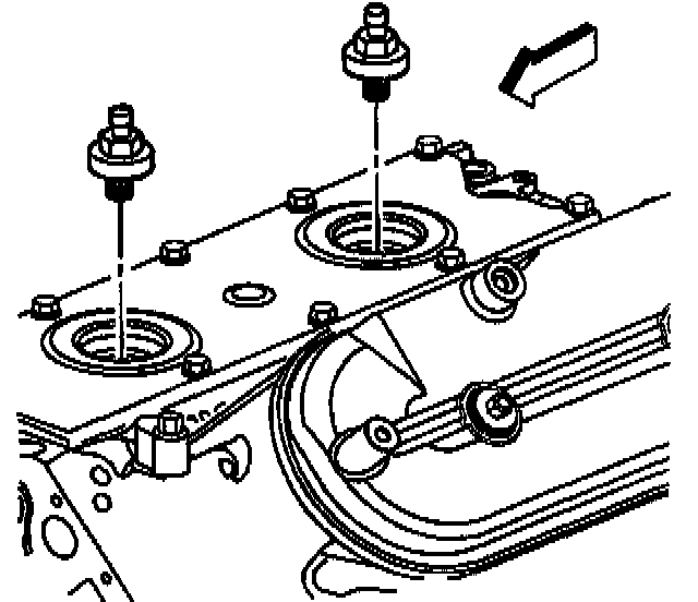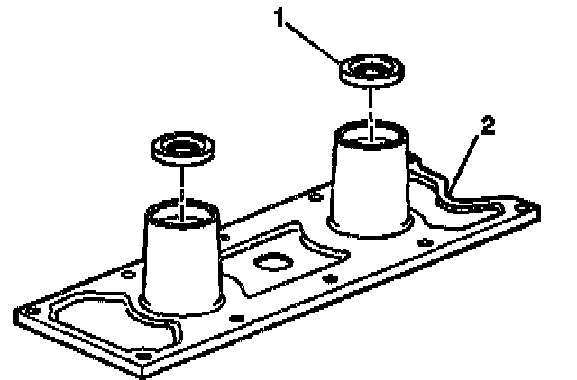 6. Remove the knock sensor oil seals (1) from the cover (2).