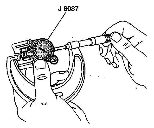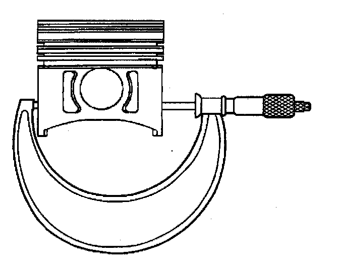 3. With a micrometer or caliper at a right angle to the piston, measure the piston 11 mm (0.433 inch) from the bottom of the skirt.