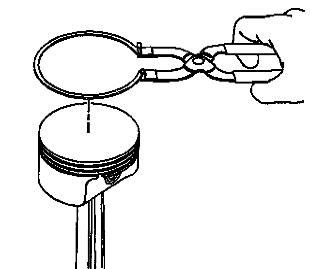 Use caution and care to expand the piston rings only slightly larger than the Outside Diameter (OD) of the piston.