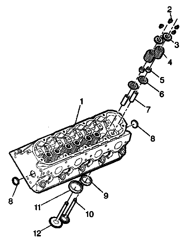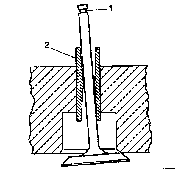 7. Inspect for excessive valve stem (1) to guide (2) clearance.