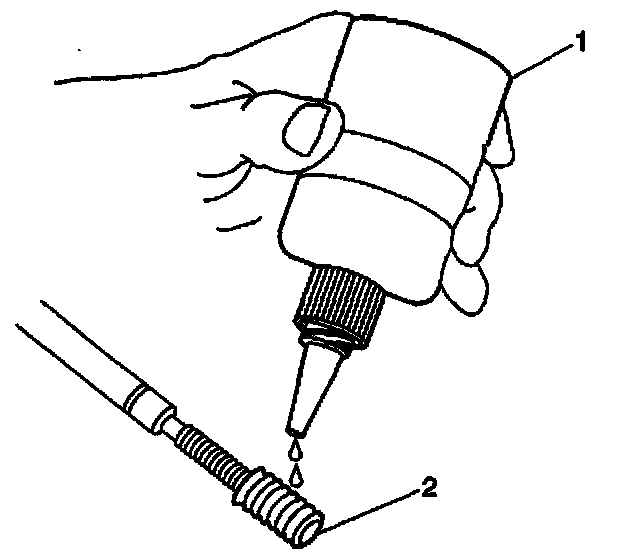 16. Lubricate the threads of the installer tool (2) with the driver oil (1).