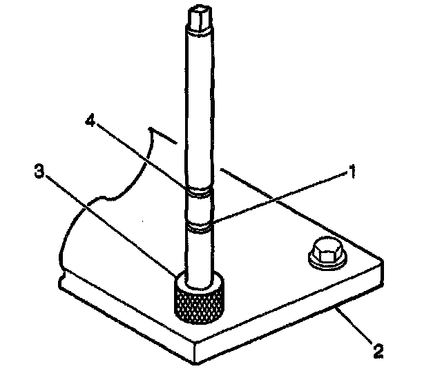 2. Install the fixture plate (3), bolts (1), and bushing (2) onto the engine block deck.