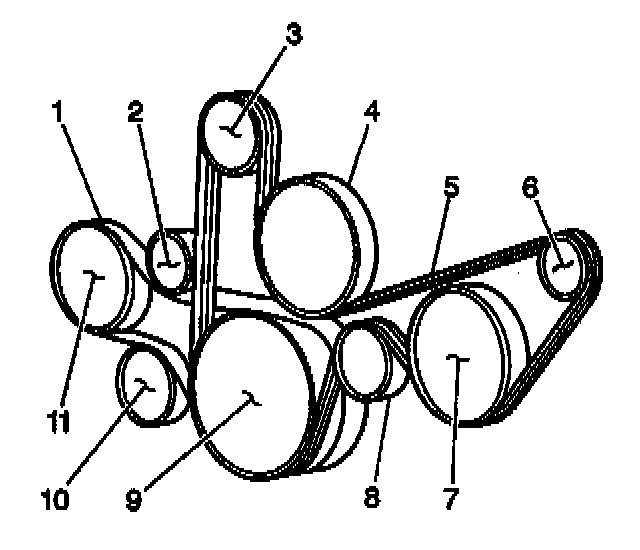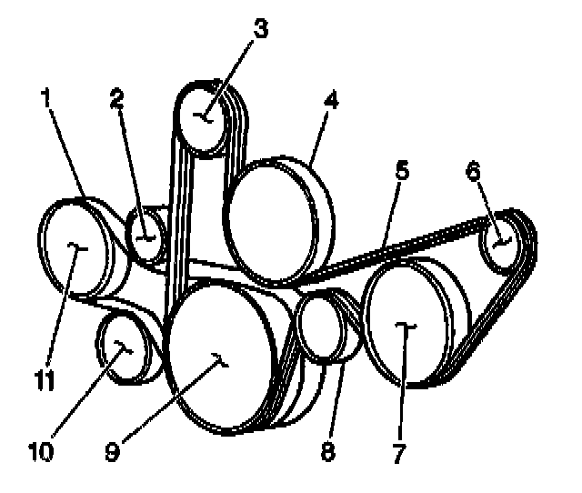 9. Remove the accessory drive belt (5) from the generator pulley (6).