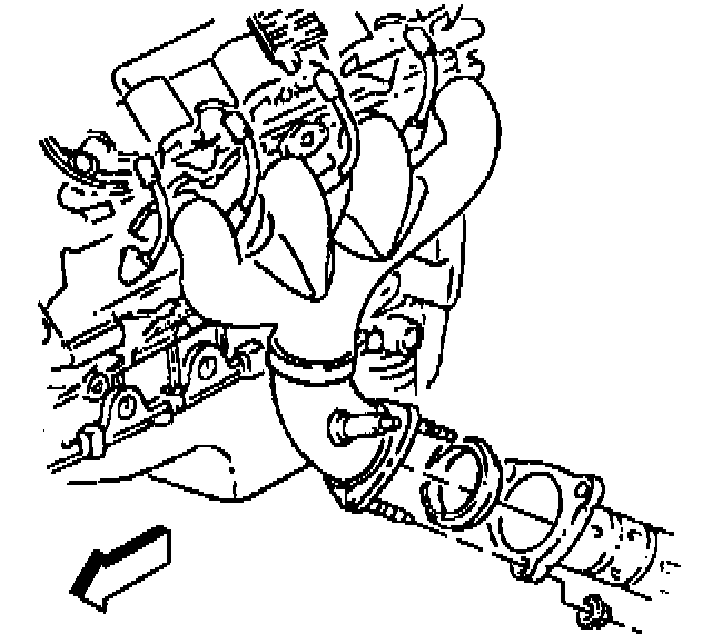 3. Remove the left hand intermediate pipe flange nuts from the exhaust manifold studs.