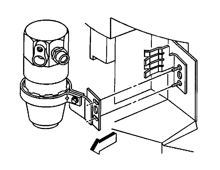 5. Install the accumulator and bracket into position in the vehicle.