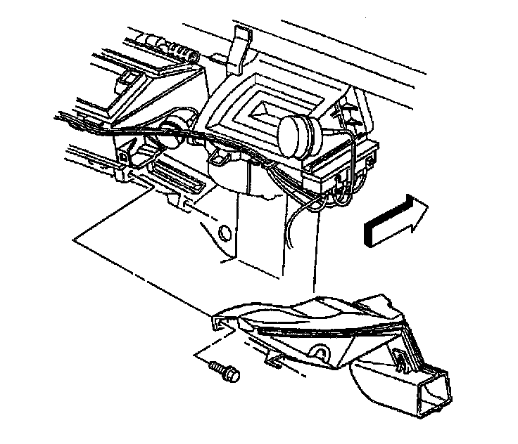 5. Install the windshield defroster duct RH retaining screw.