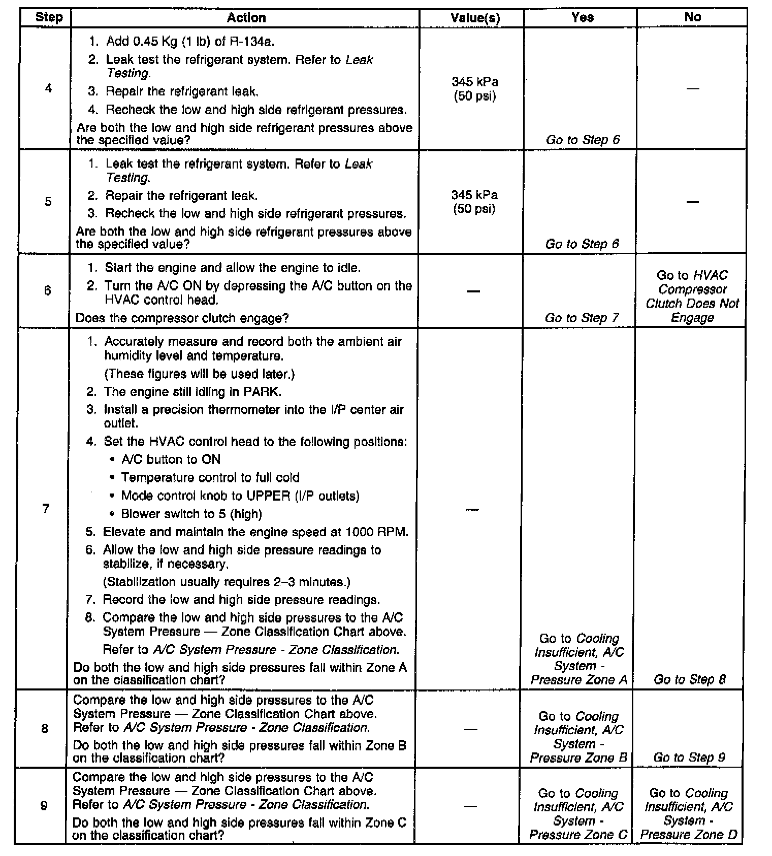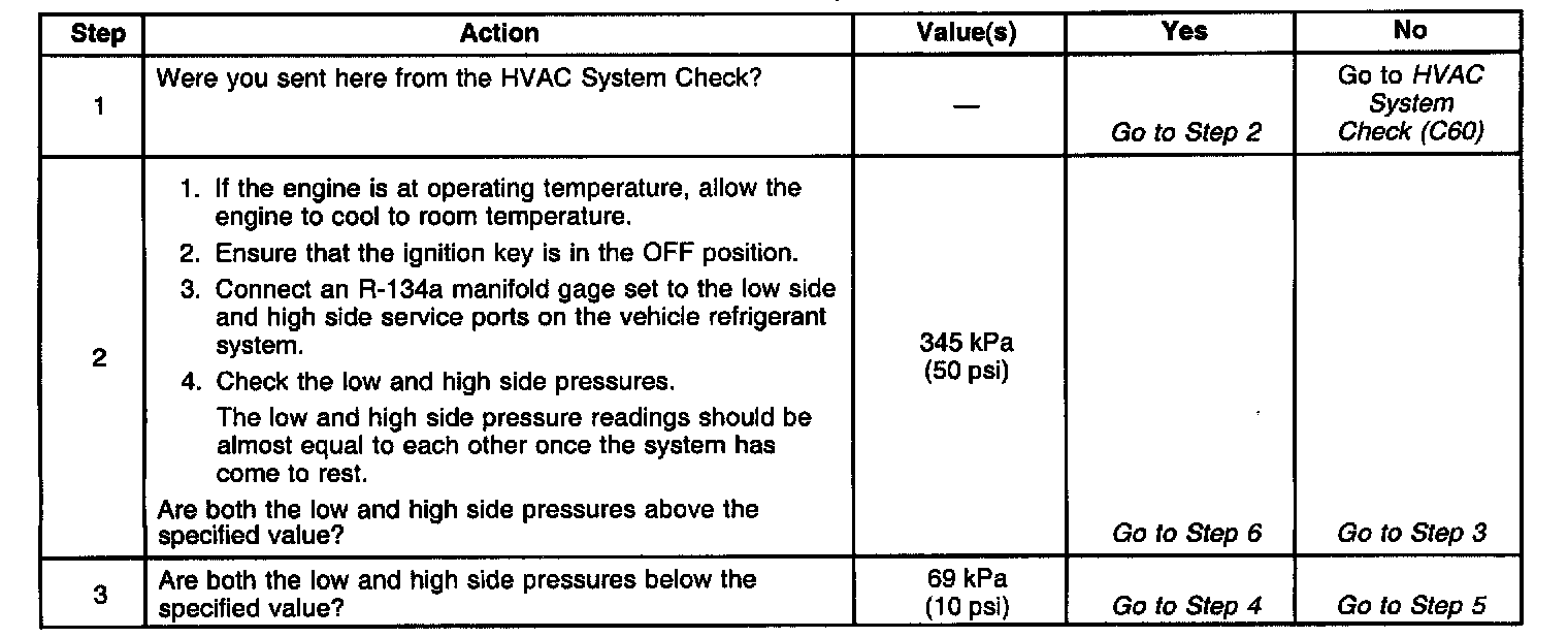 Cooling Insufficient - A/C System Diagnostic Tables