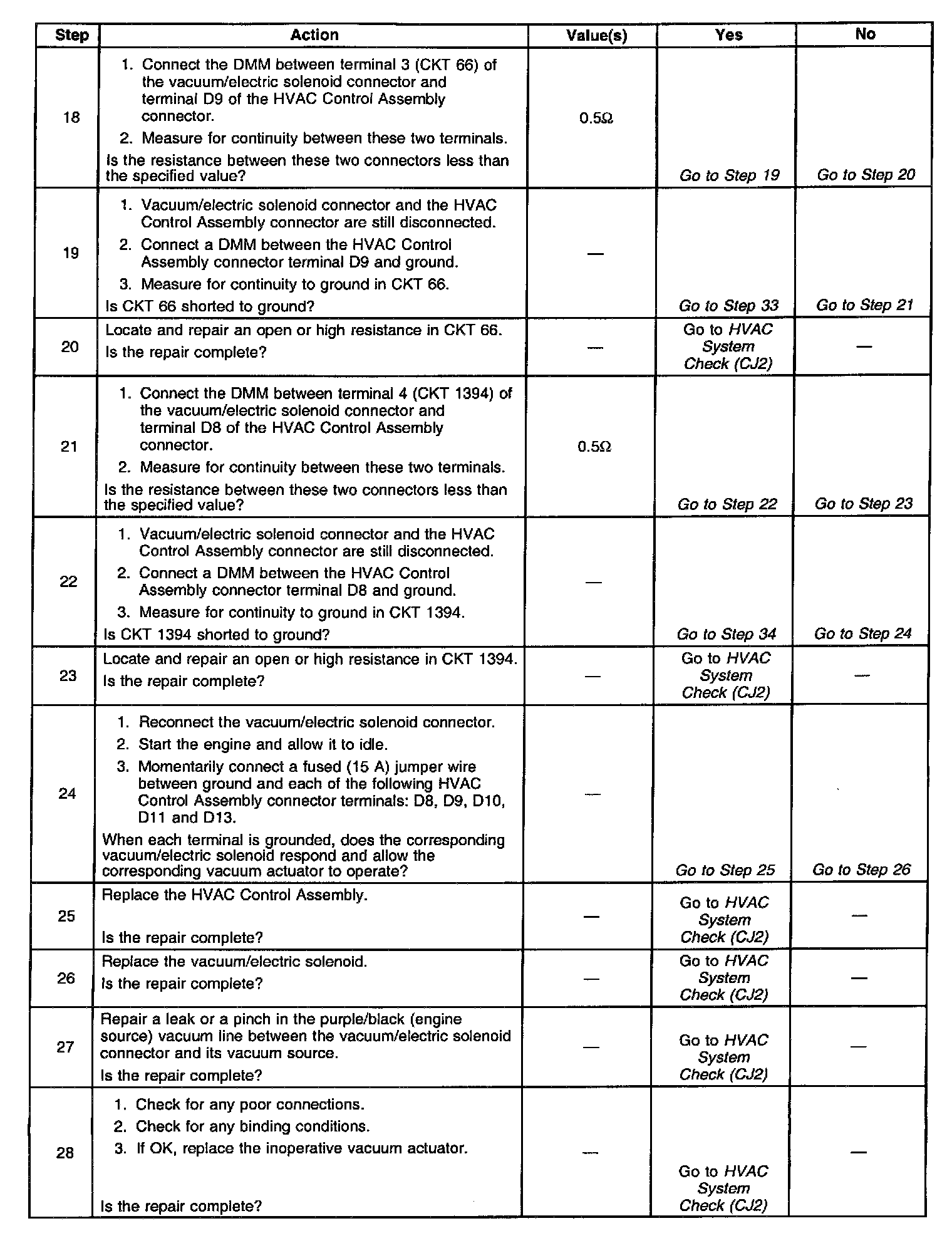 Symptoms - HVAC System - Automatic