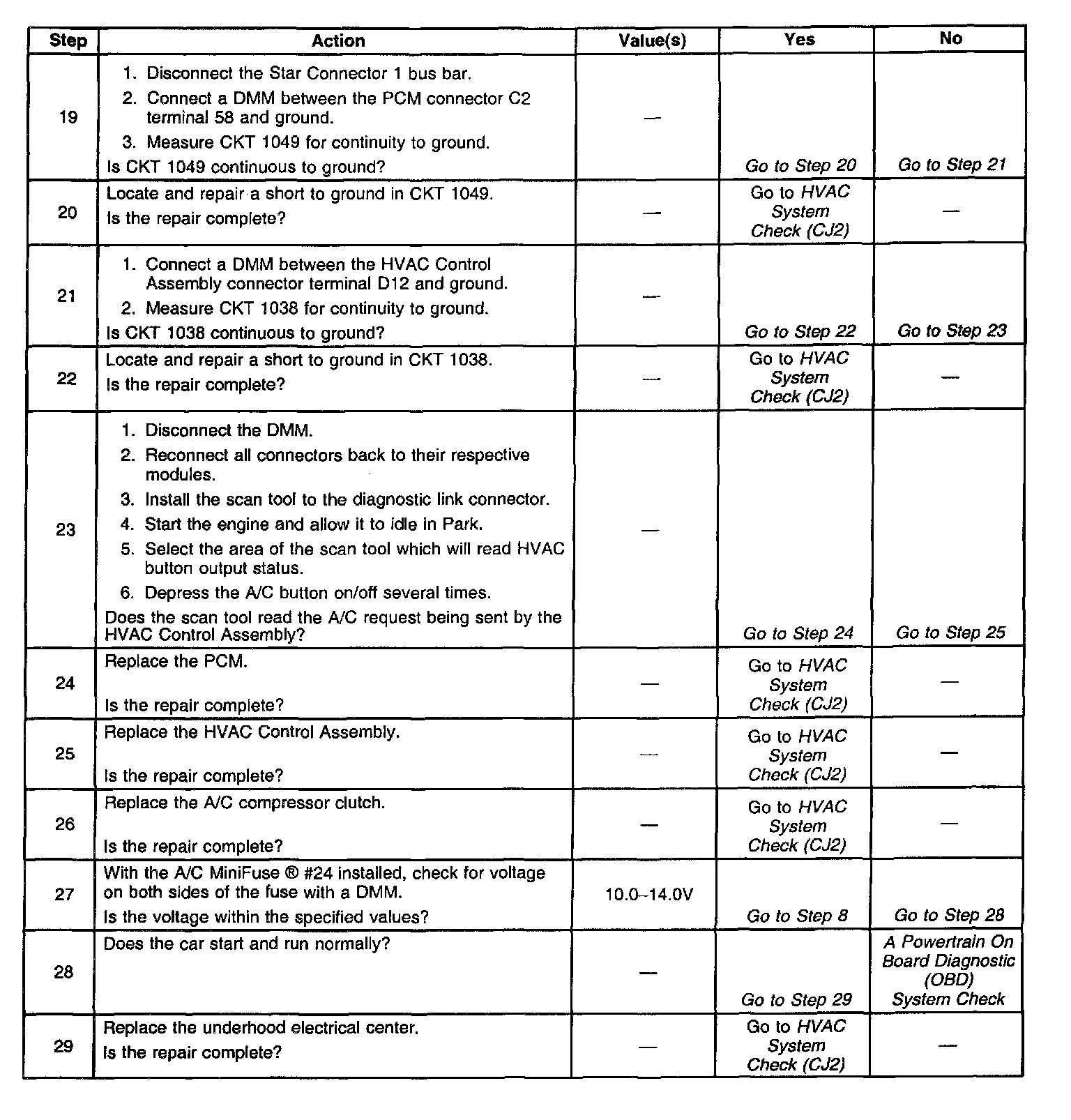 Symptoms - HVAC System - Automatic