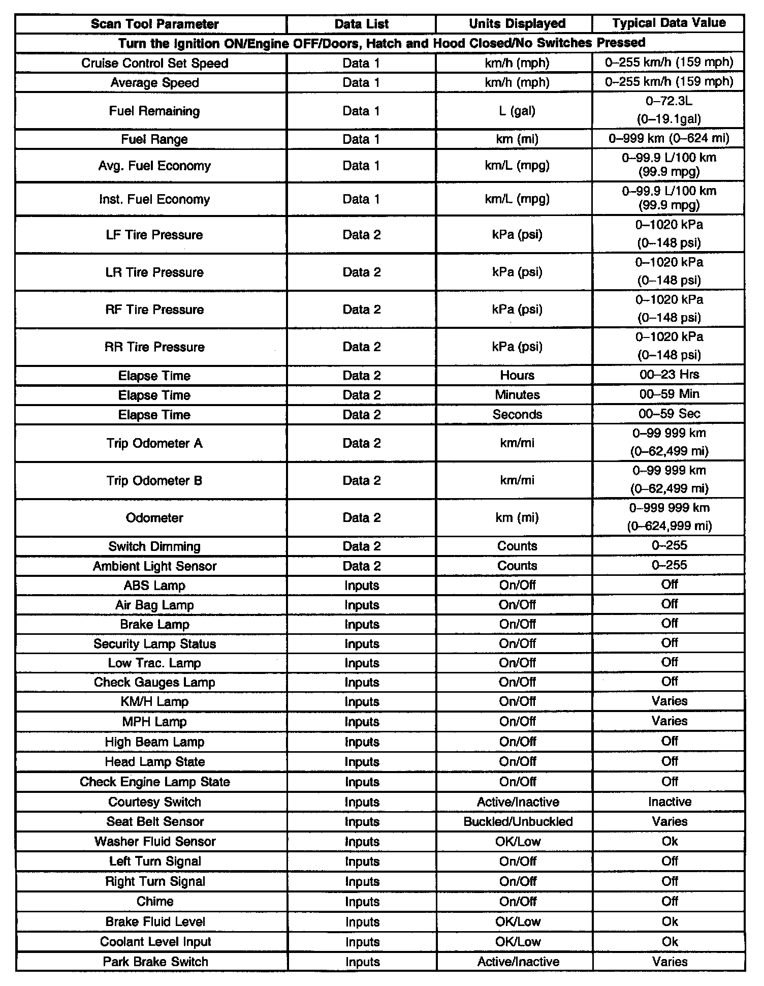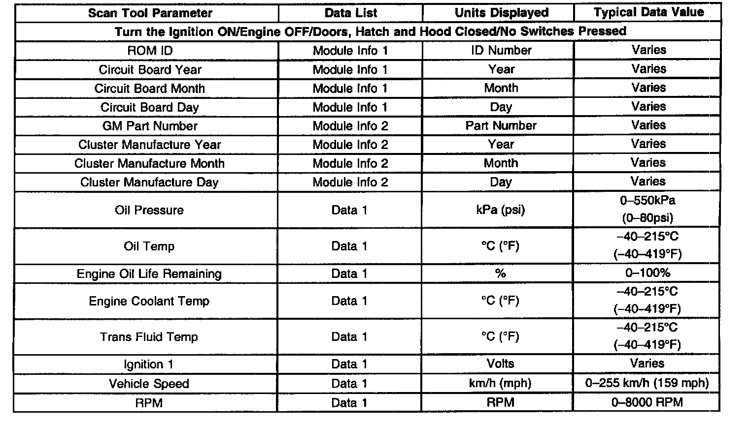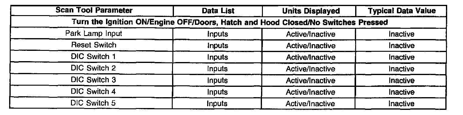 Scan Tool Data List - Instrument Panel Cluster (IPC)