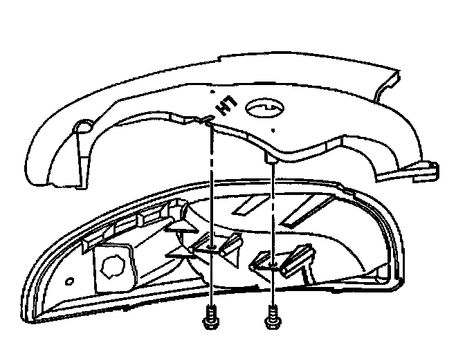 5. Align the lamp to the opening in the front fascia and hold the lamp firmly in place against the fascia, while installing the front [1][2]turn signal lamp bracket retaining screws.